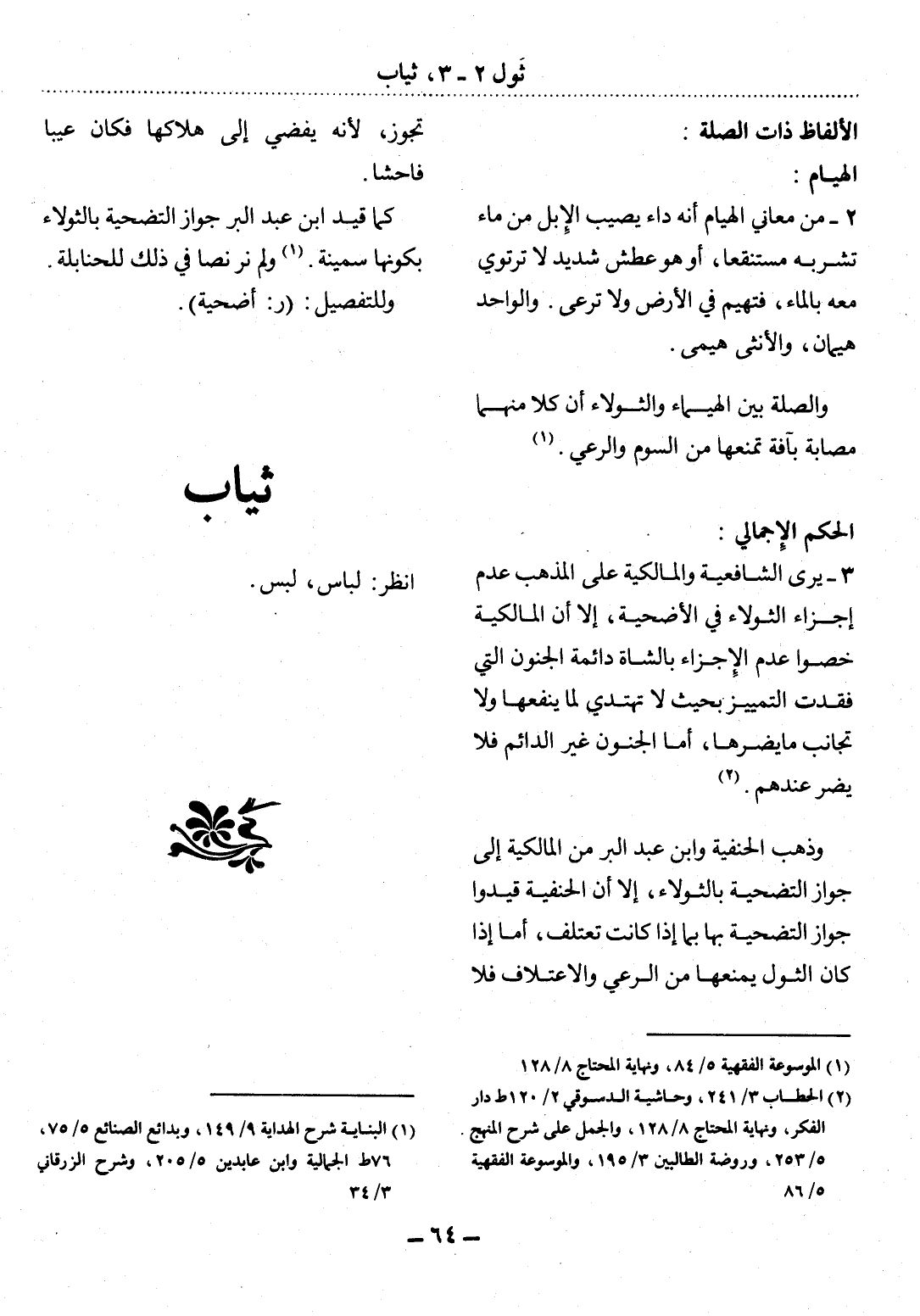 وَالصِّلَةُ بَيْنَ الْهَيْمَاءِ وَالثَّوْلاَءِ أَنَّ كُلًّا مِنْهُمَا مُصَابَةٌ بِآفَةٍ تَمْنَعُهَا مِنَ السَّوْمِ وَالرَّعْيِ (1) .