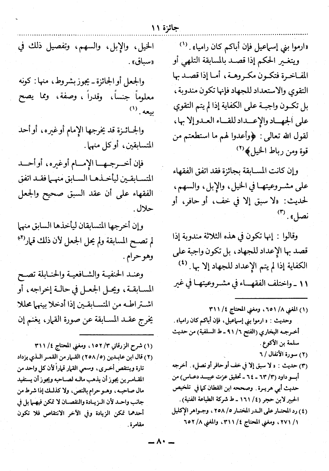 (1) المغني 8 / 651، ومغني المحتاج 4 / 311. وحديث: " ارموا بني إسماعيل، فإن أباكم كان راميا ". أخرجه البخاري (الفتح 6 / 91 - ط السلفية) من حديث سلمة بن الأكوع.