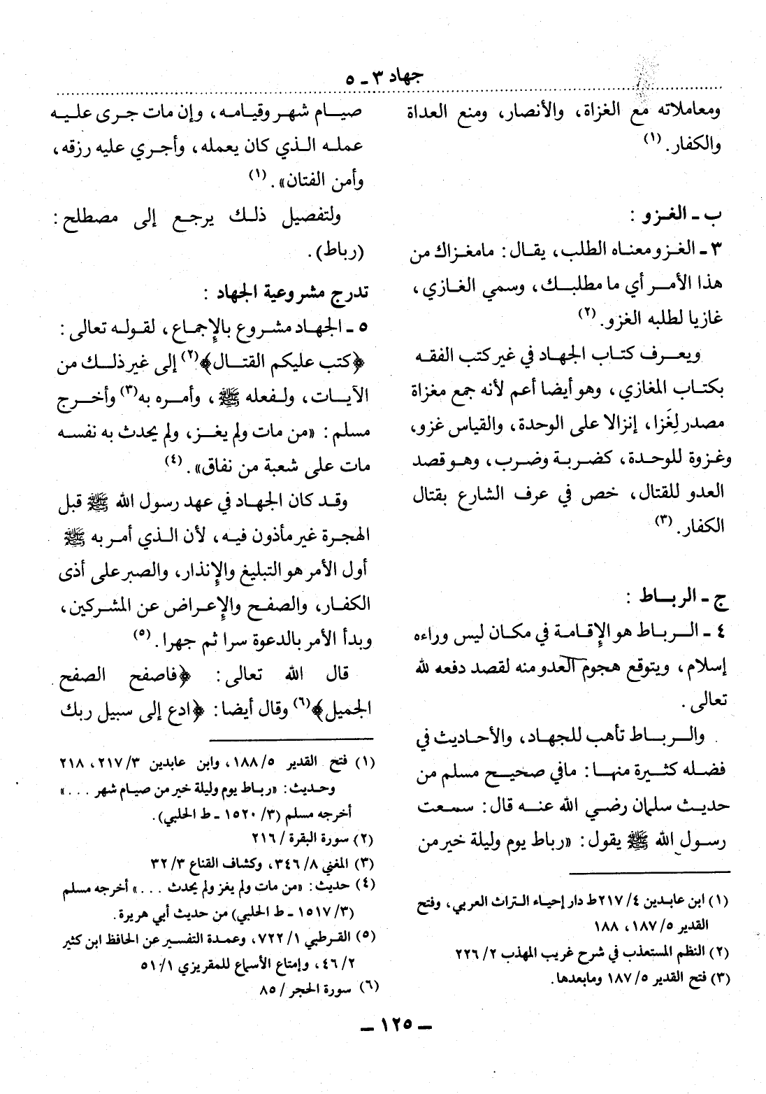 (1) فتح القدير 5 / 188، وابن عابدين 3 / 217، 218، وحديث: " رباط يوم وليلة خير من صيام شهر. . . " أخرجه مسلم (3 / 1520 - ط الحلبي) .