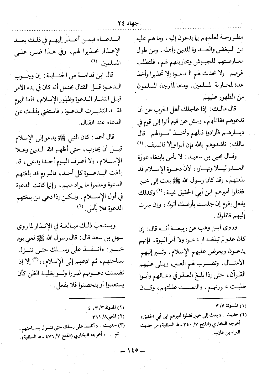 (3) حديث: " أنفذ على رسلك حتى تنزل بساحتهم، ثم. . . " أخرجه البخاري (الفتح 7 / 476 - ط السلفية) .