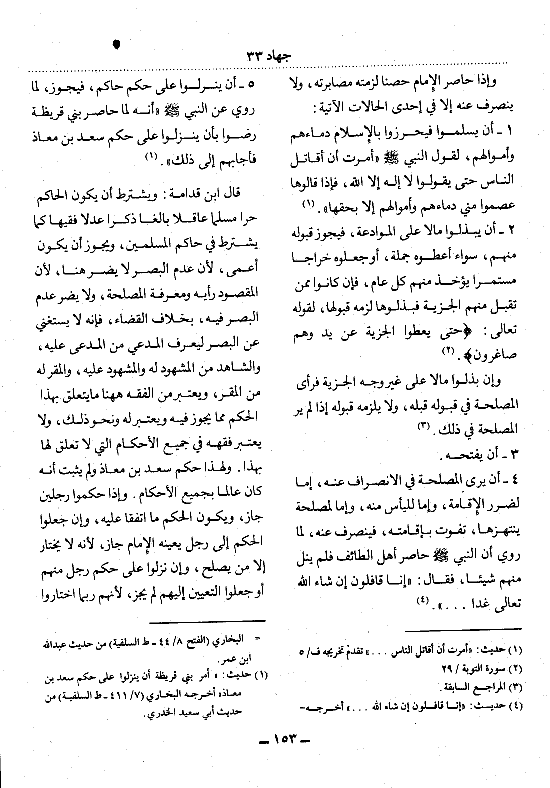 4 - أَنْ يَرَى الْمَصْلَحَةَ فِي الاِنْصِرَافِ عَنْهُ، إِمَّا لِضَرَرِ الإِْقَامَةِ، وَإِمَّا لِلْيَأْسِ مِنْهُ، وَإِمَّا لِمَصْلَحَةٍ يَنْتَهِزُهَا، تَفُوتُ بِإِقَامَتِهِ، فَيَنْصَرِفُ عَنْهُ؛ لِمَا رُوِيَ أَنَّ النَّبِيَّ صَلَّى اللَّهُ عَلَيْهِ وَسَلَّمَ حَاصَرَ أَهْل الطَّائِفِ فَلَمْ يَنَل مِنْهُمْ شَيْئًا، فَقَال: إِنَّا قَافِلُونَ إِنْ شَاءَ اللَّهُ تَعَالَى غَدًا (4) . . . .