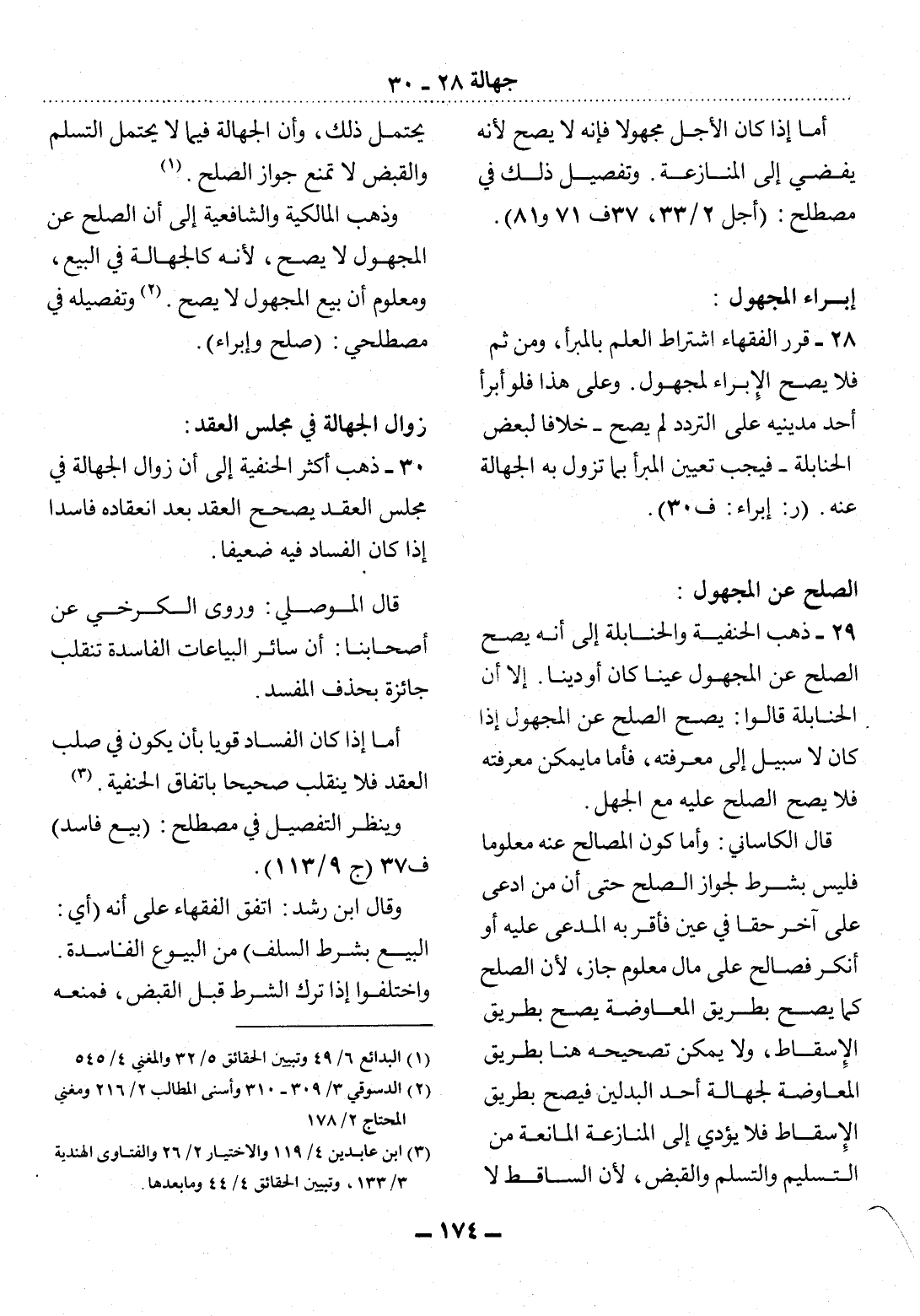 30 - ذَهَبَ أَكْثَرُ الْحَنَفِيَّةِ إِلَى أَنَّ زَوَال الْجَهَالَةِ فِي مَجْلِسِ الْعَقْدِ يُصَحِّحُ الْعَقْدَ بَعْدَ انْعِقَادِهِ فَاسِدًا إِذَا كَانَ الْفَسَادُ فِيهِ ضَعِيفًا.