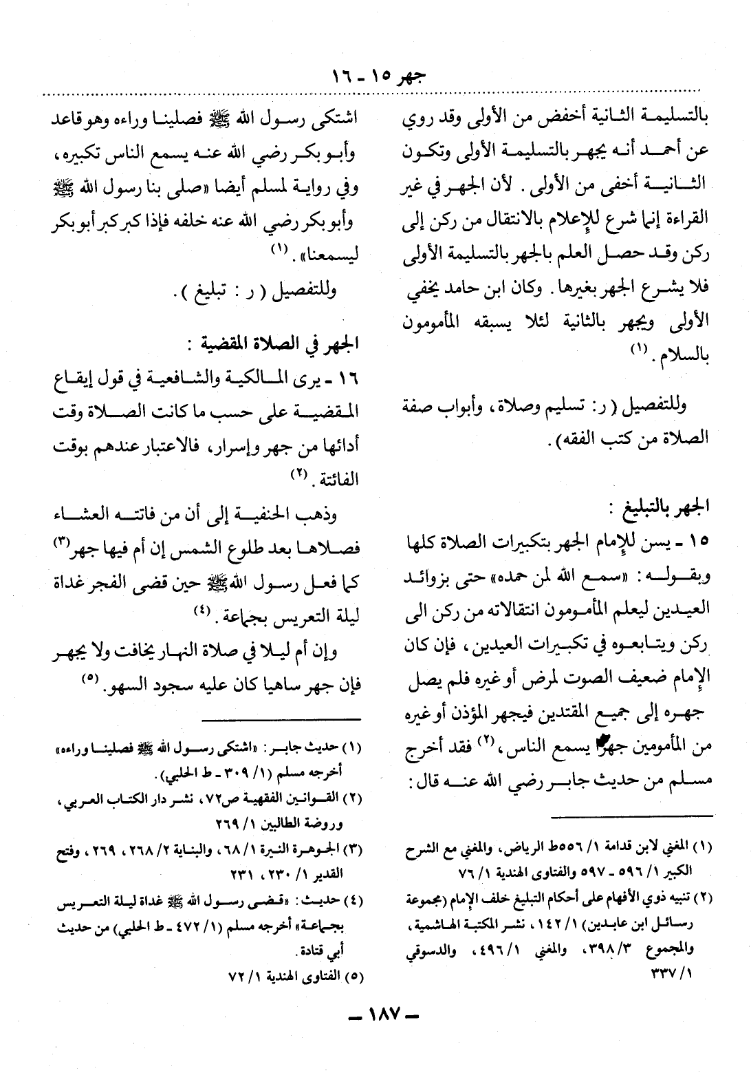 (2) تنبيه ذوي الأفهام على أحكام التبليغ خلف الإمام (مجموعة رسائل ابن عابدين) 1 / 142، نشر المكتبة الهاشمية، والمجموع 3 / 398، والمغني 1 / 496، والدسوقي 1 / 337.
