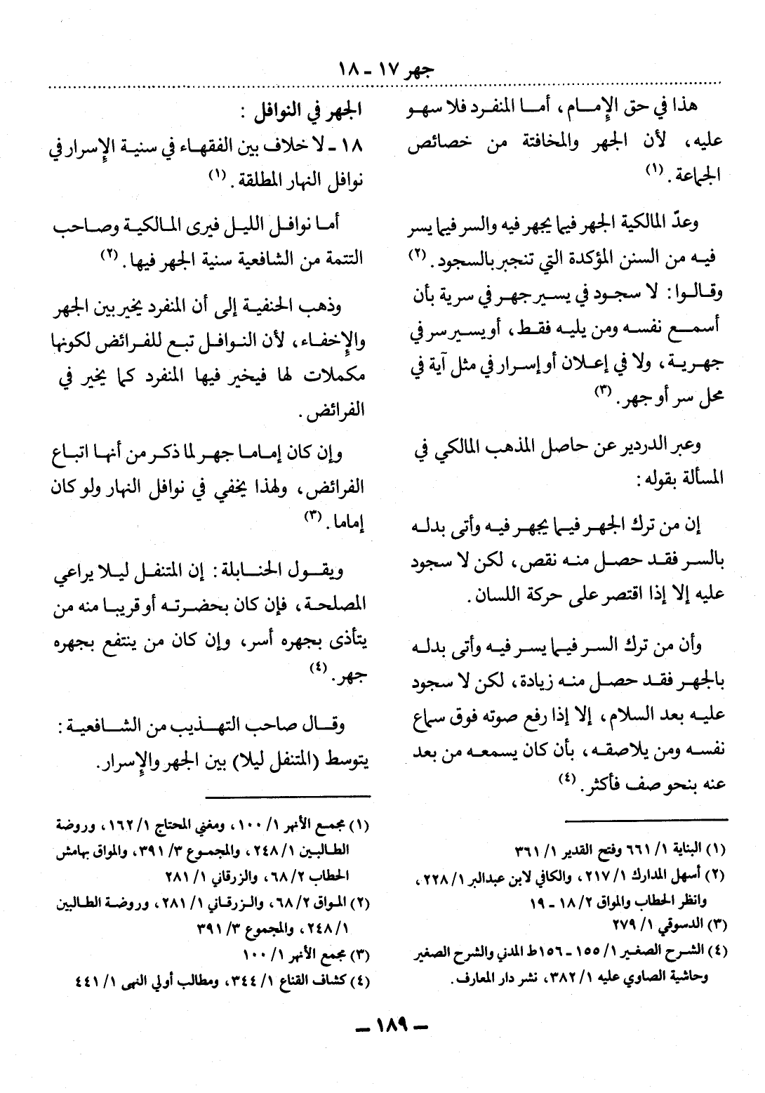 (1) مجمع الأنهر 1 / 100، ومغني المحتاج 1 / 162، وروضة الطالبين 1 / 248، والمجموع 3 / 391، والمواق بهامش الحطاب 2 / 68، والزرقاني 1 / 281.