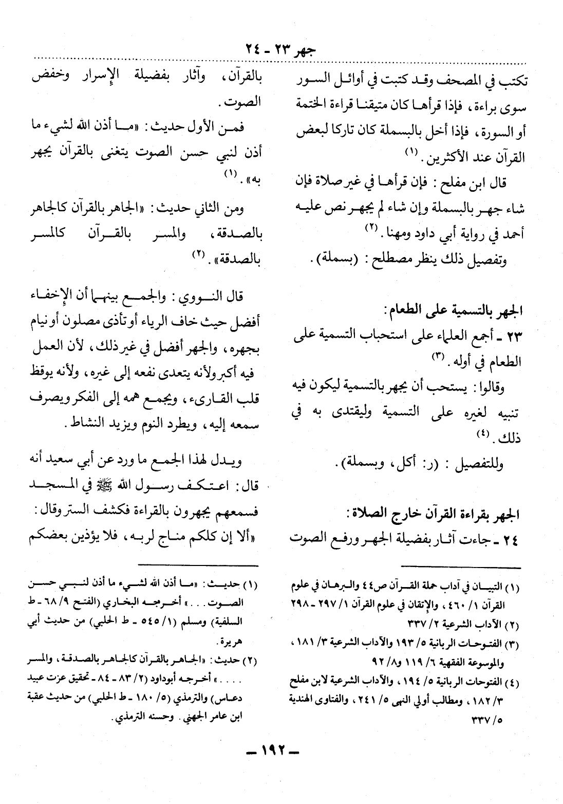 (3) الفتوحات الربانية 5 / 193، والآداب الشرعية 3 / 181، والموسوعة الفقهية 6 / 119 و 8 / 92.