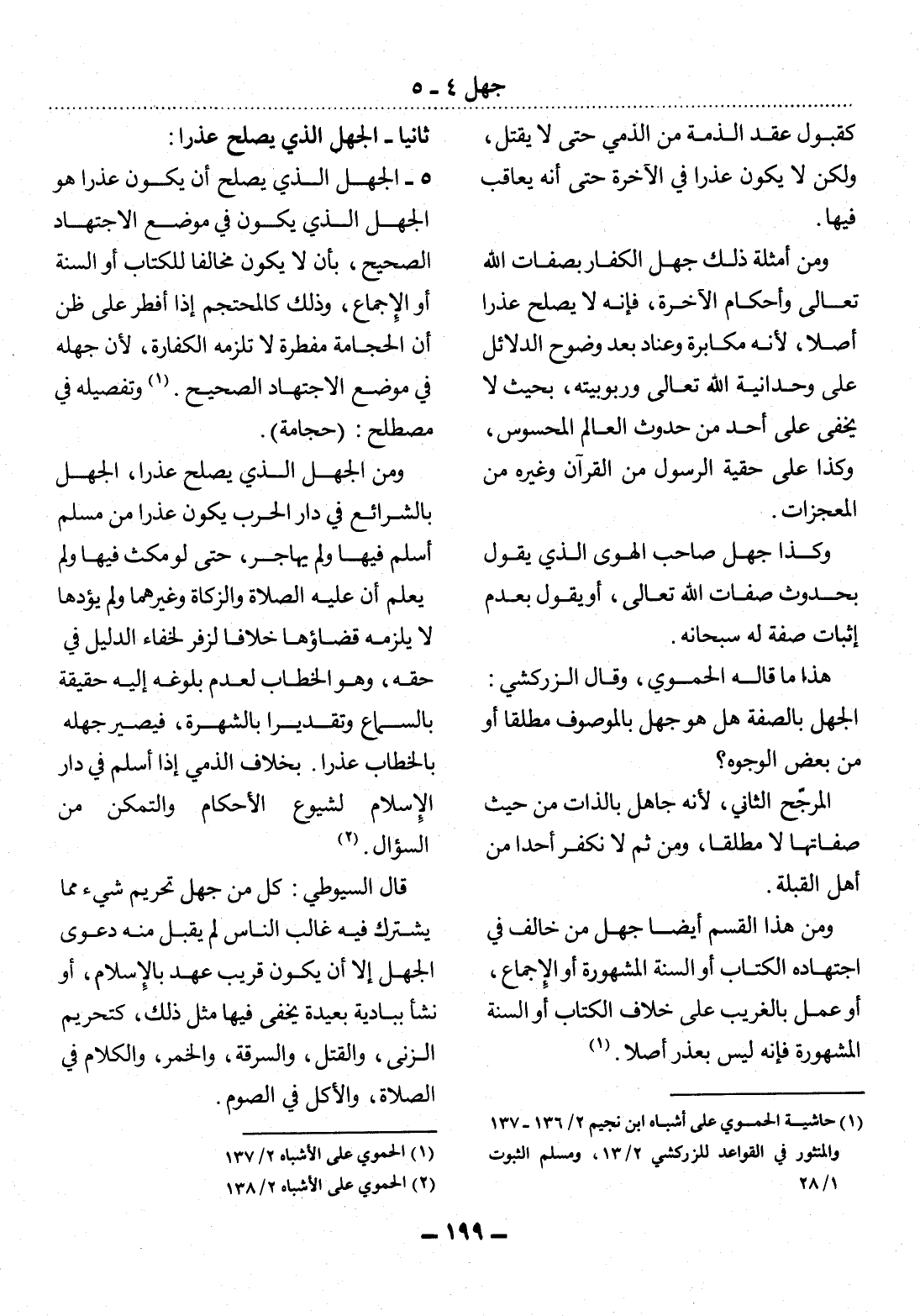 (1) حاشية الحموي على أشباه ابن نجيم 2 / 136 - 137، والمنثور في القواعد للزركشي 2 / 13، ومسلم الثبوت 1 / 28.