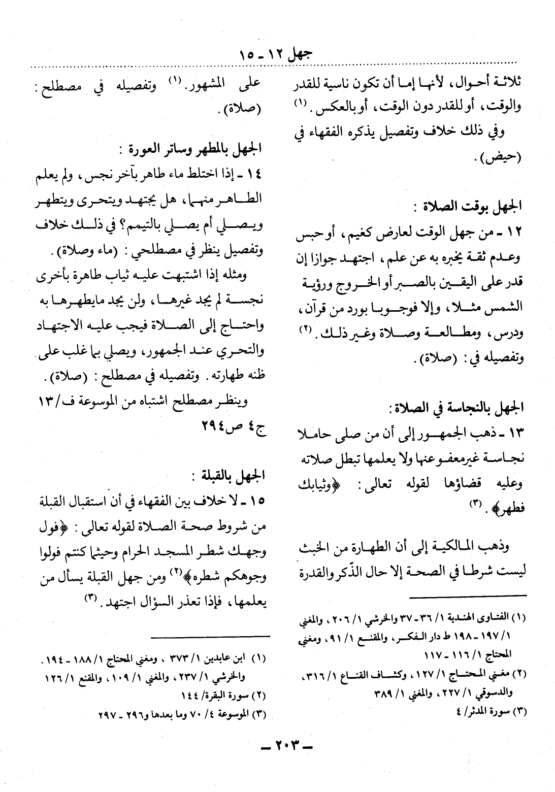 (1) الفتاوى الهندية 1 / 36 - 37 والخرشي 1 / 206، والمغني 1 / 197 - 198 ط دار الفكر، والمقنع 1 / 91، ومعني المحتاج 1 / 116 - 117.