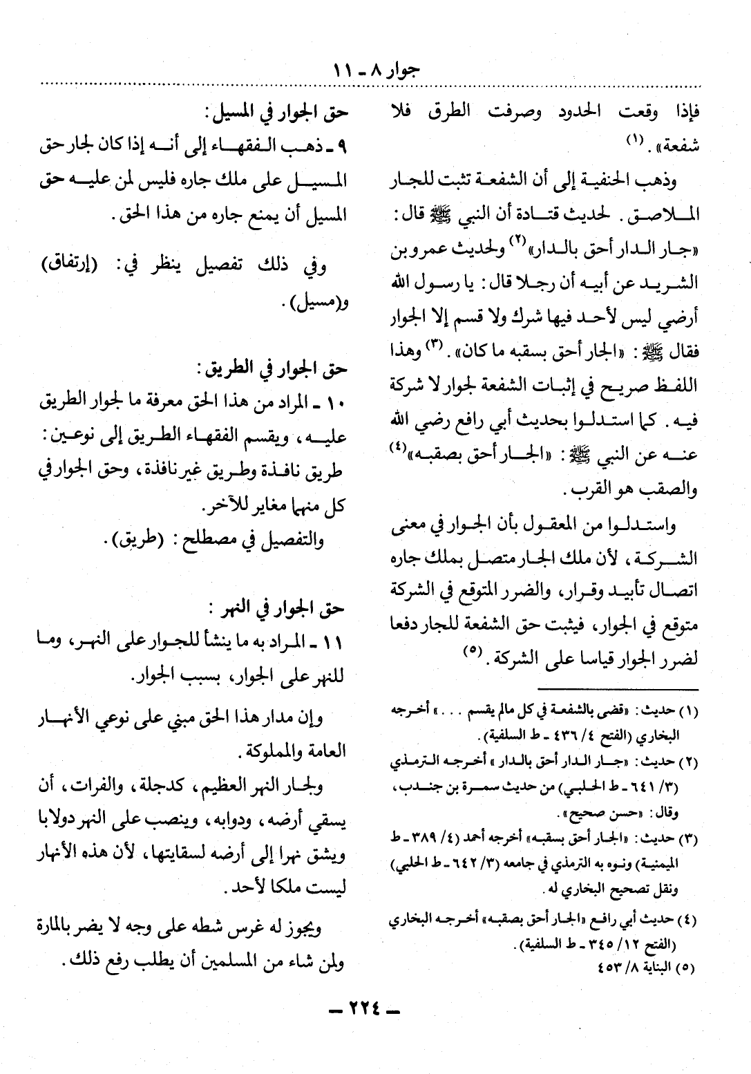 (1) حديث: " قضى بالشفعة في كل ما لم يقسم. . . " أخرجه البخاري (الفتح 4 / 436 - ط السلفية) .