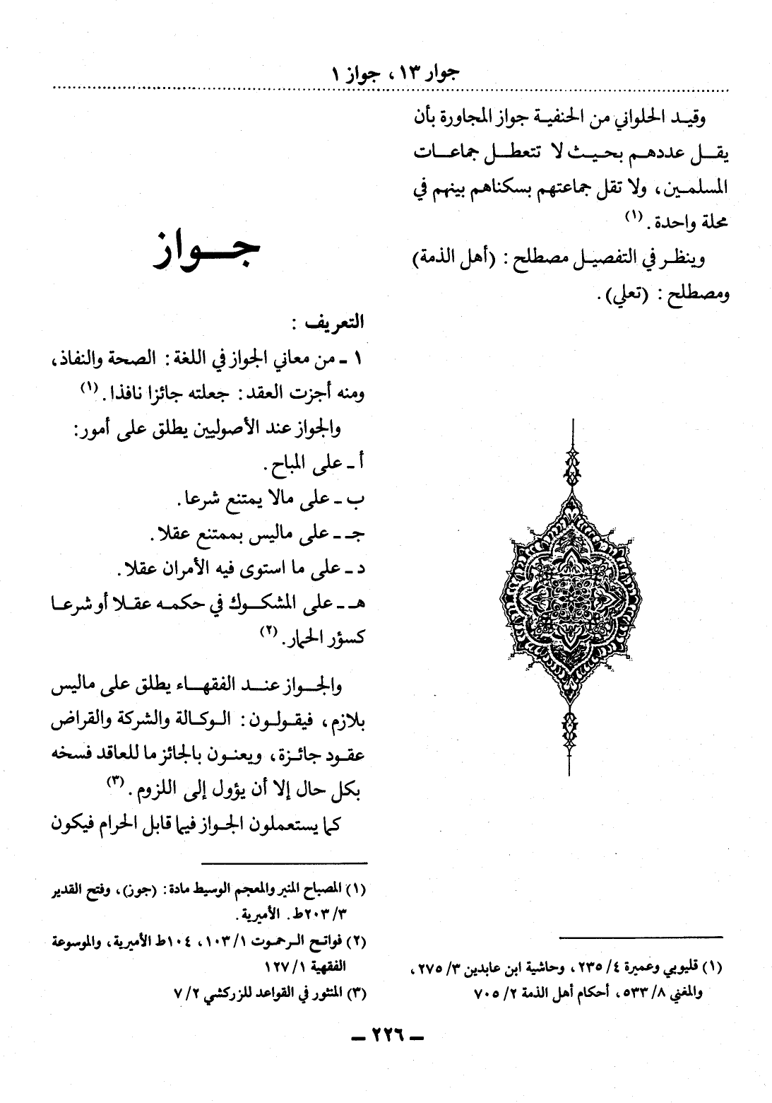 (1) المصباح المنير والمعجم الوسيط مادة: (جوز) ، وفتح القدير 3 / 203 ط. الأميرية.