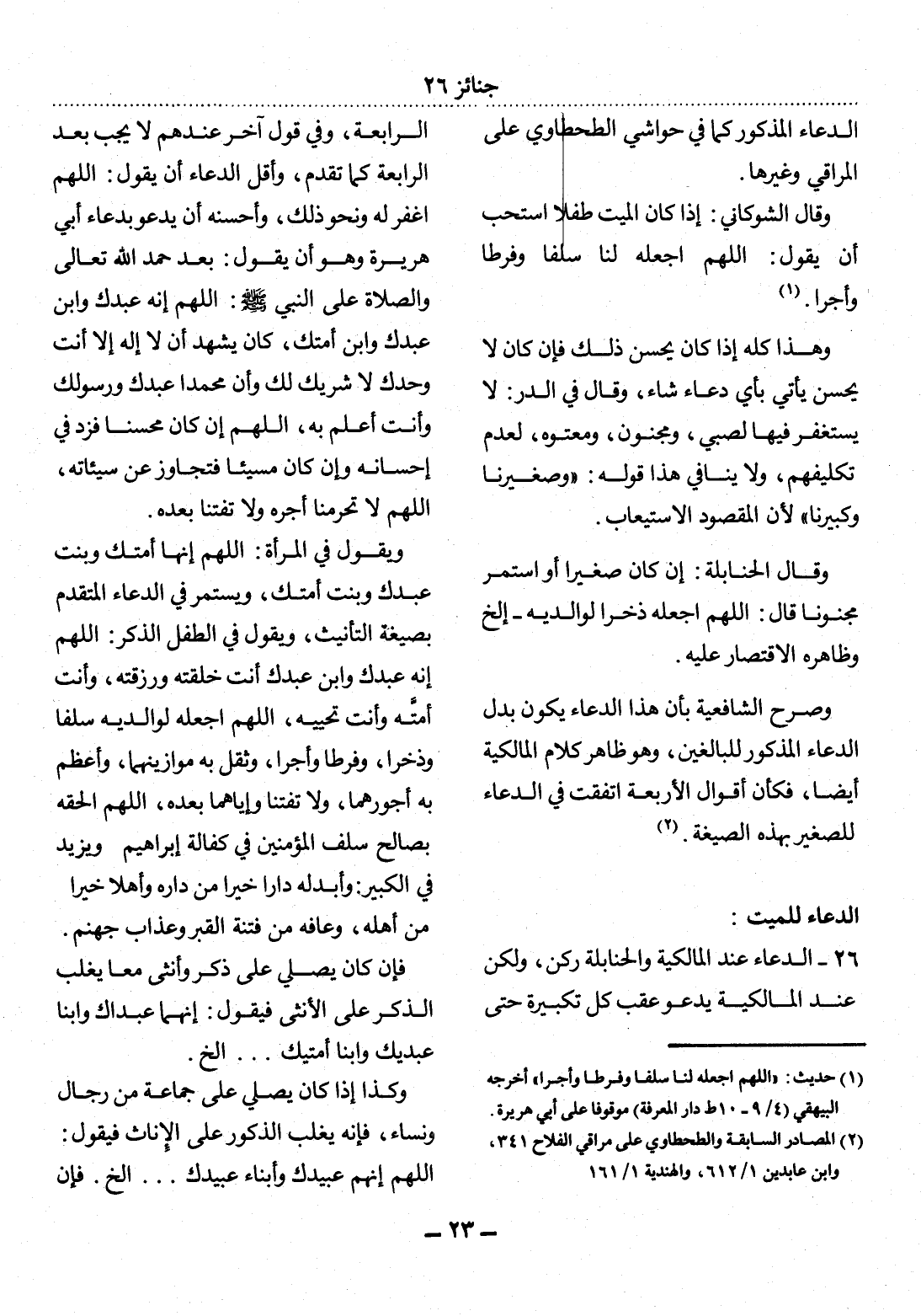 (1) حديث: " اللهم اجعله لنا سلفا وفرطا وأجرا " أخرجه البيهقي (4 / 9 - 10 ط دار المعرفة) موقوفا على أبي هريرة.