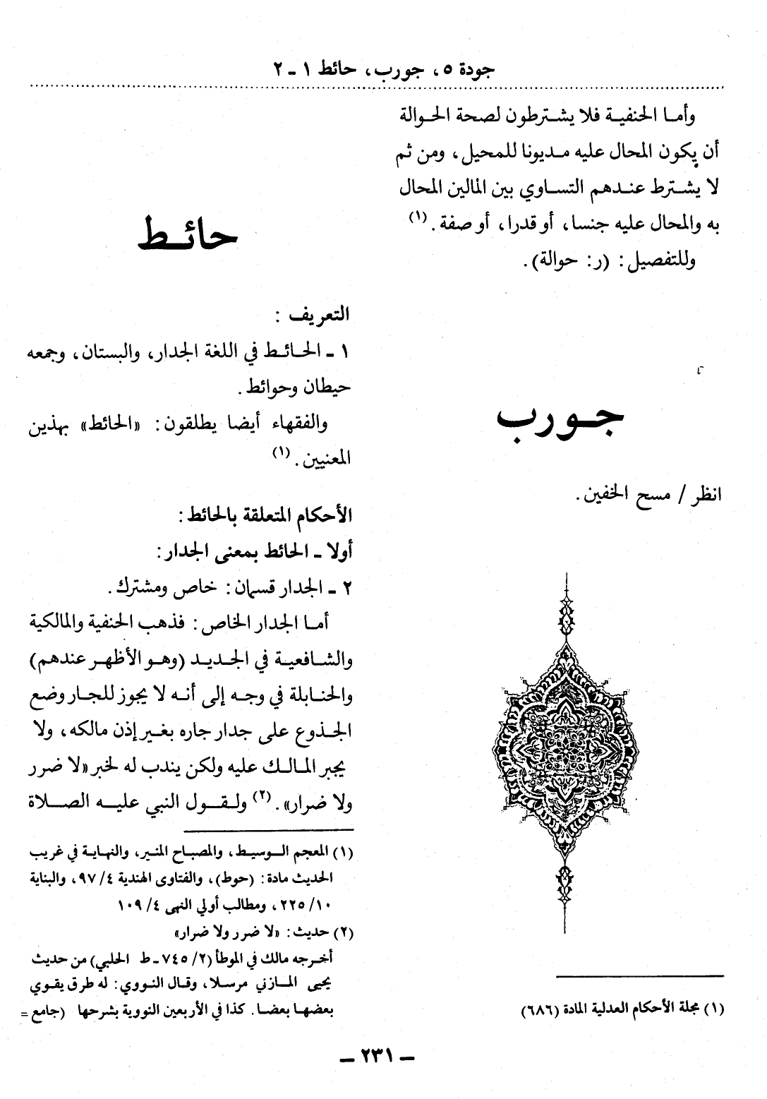 (1) المعجم الوسيط، والمصباح المنير، والنهاية في غريب الحديث مادة (حوط) ، والفتاوى الهندية 4 / 97، والبناية 10 / 225، ومطالب أولي النهى 4 / 109.
