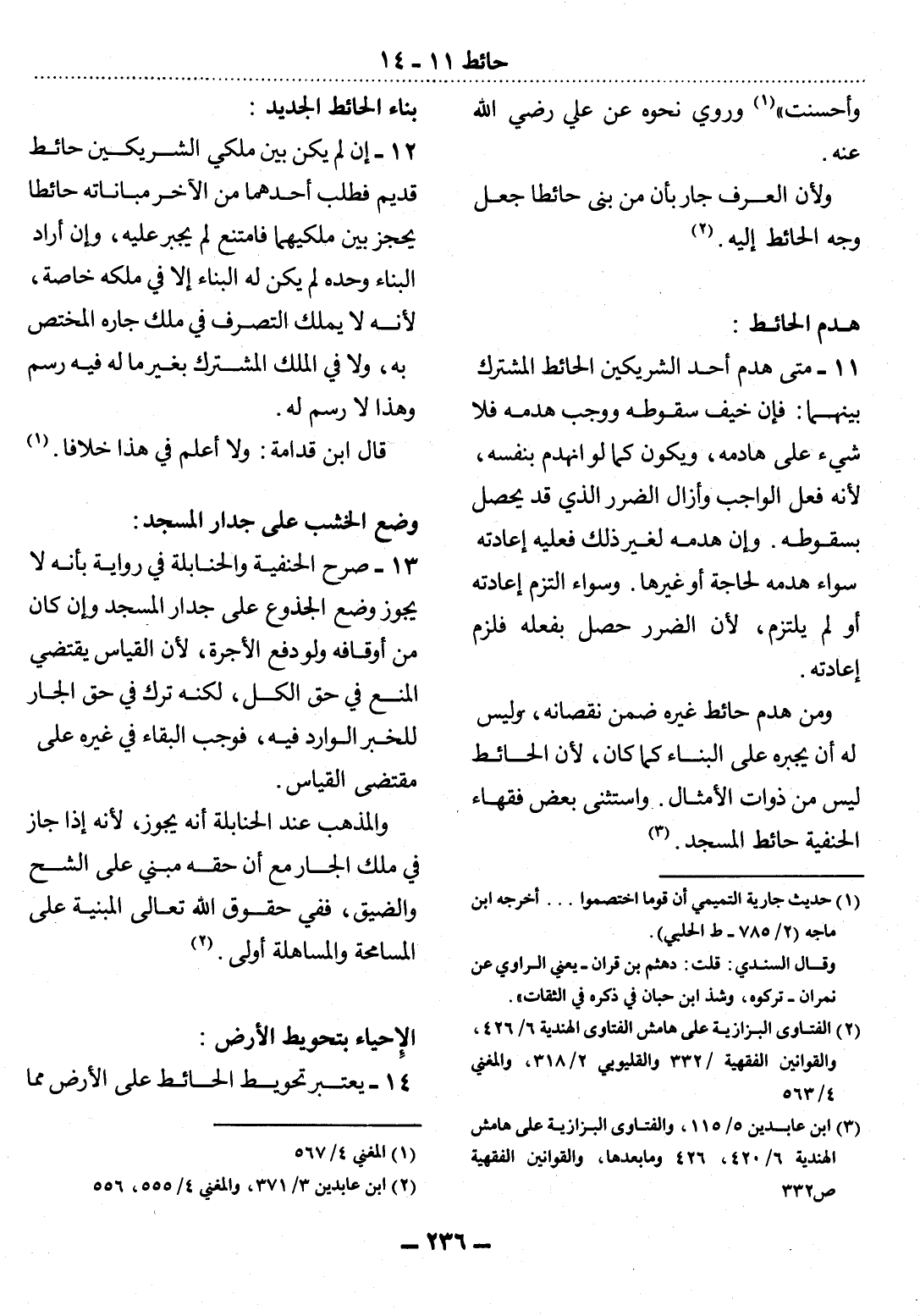 14 - يُعْتَبَرُ تَحْوِيطُ الْحَائِطِ عَلَى الأَْرْضِ، مِمَّا