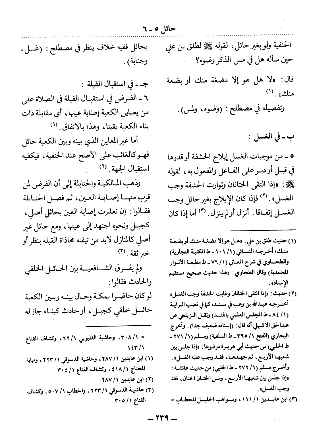 (3) ابن عابدين 1 / 111، ومواهب الجليل للحطاب 1 / 308، وحاشية القليوبي 1 / 62، وكشاف القناع 1 / 143.