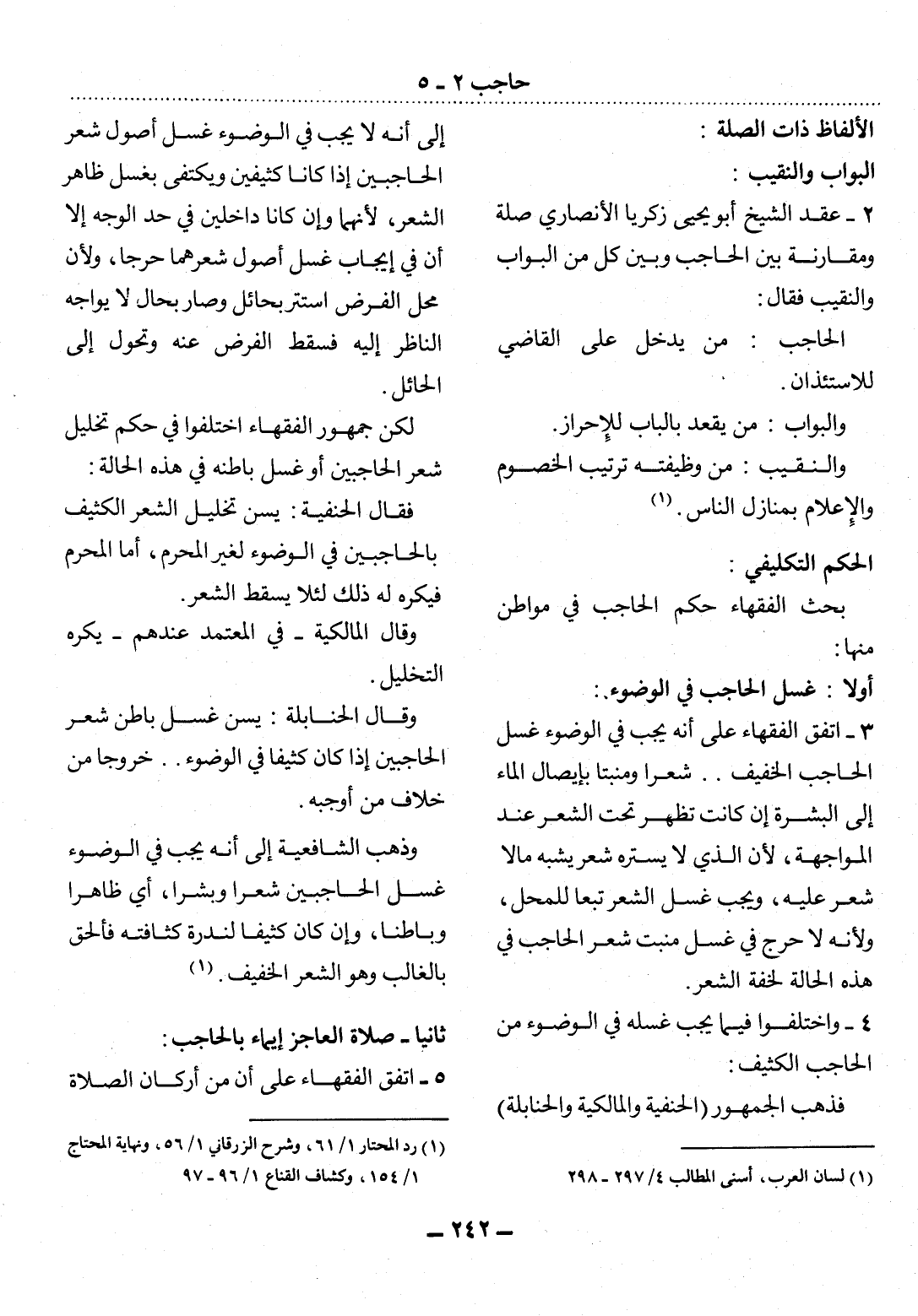 4 - وَاخْتَلَفُوا فِيمَا يَجِبُ غَسْلُهُ فِي الْوُضُوءِ مِنَ الْحَاجِبِ الْكَثِيفِ:
