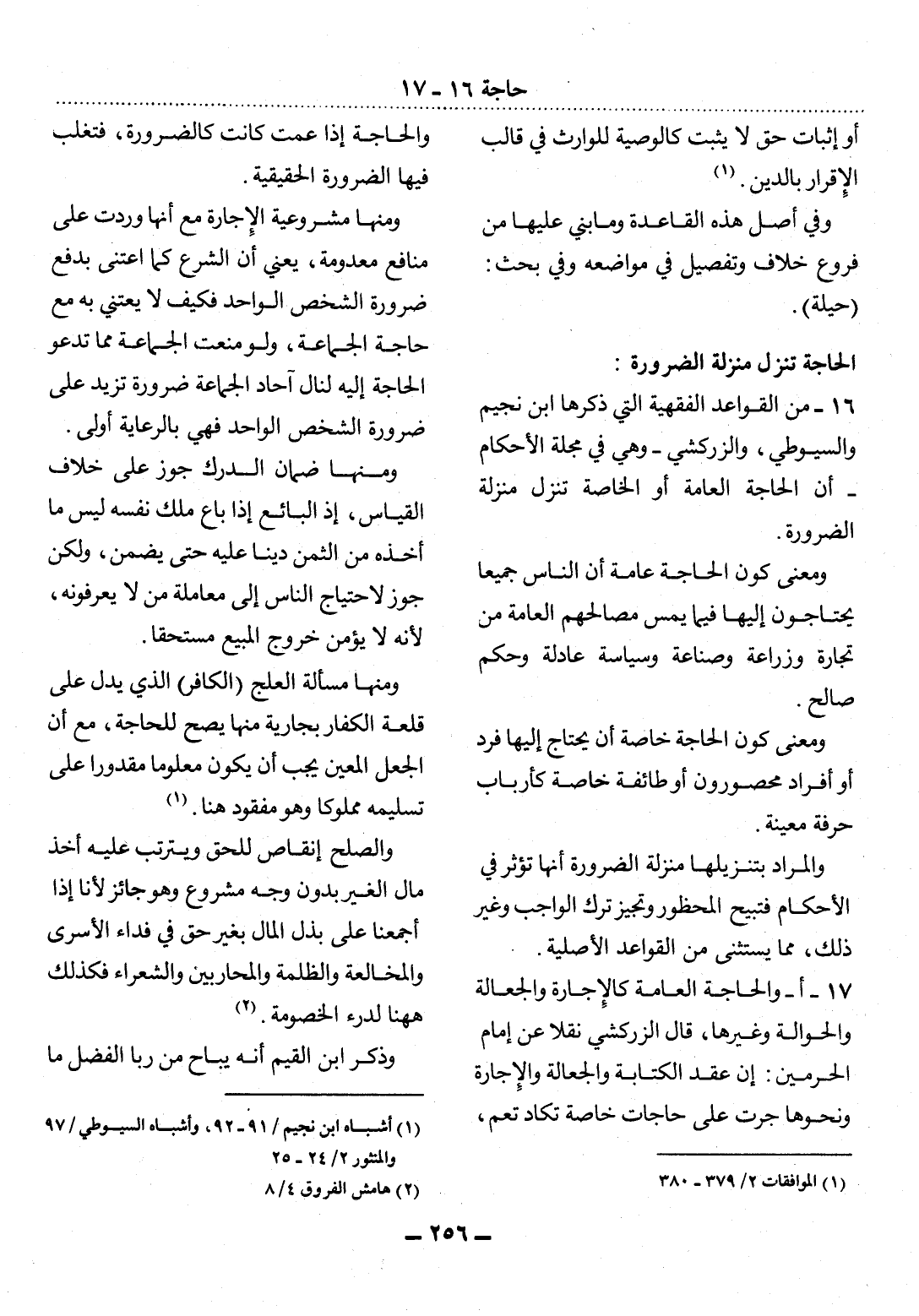 16 - مِنَ الْقَوَاعِدِ الْفِقْهِيَّةِ الَّتِي ذَكَرَهَا ابْنُ نُجَيْمٍ وَالسُّيُوطِيُّ، وَالزَّرْكَشِيُّ - وَهِيَ فِي مَجَلَّةِ الأَْحْكَامِ - أَنَّ الْحَاجَةَ الْعَامَّةَ أَوِ الْخَاصَّةَ تُنَزَّل مَنْزِلَةَ الضَّرُورَةِ.