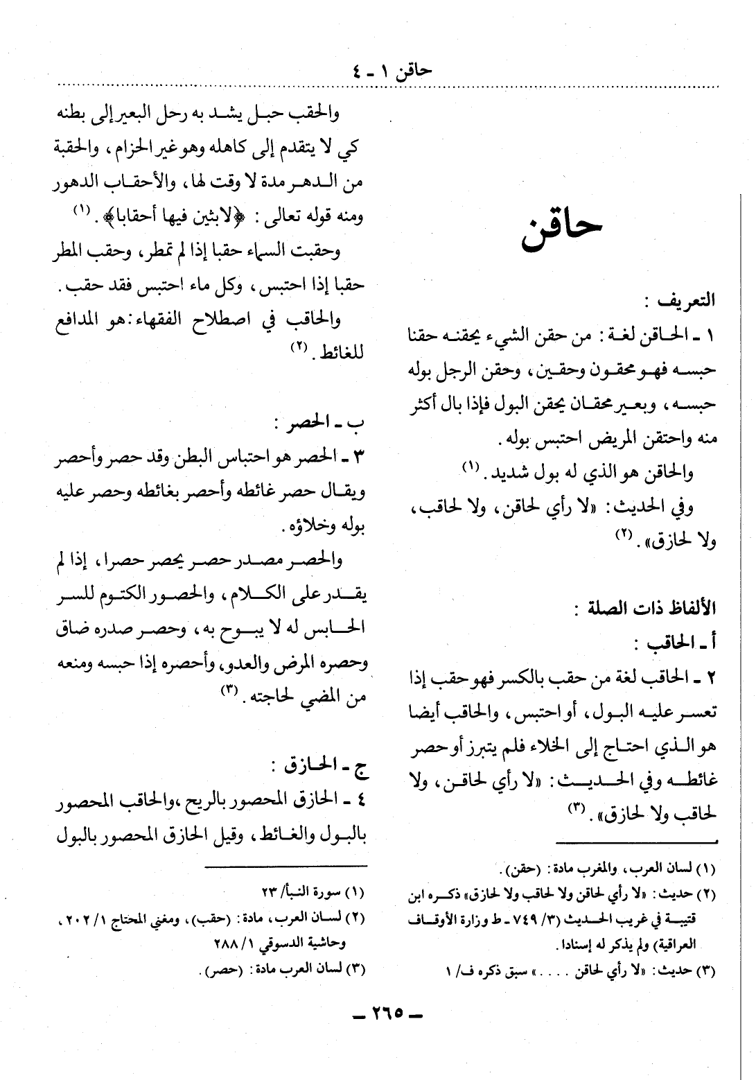 (2) لسان العرب، مادة: (حقب) ، ومغني المحتاج 1 / 202، وحاشية الدسوقي 1 / 288.
