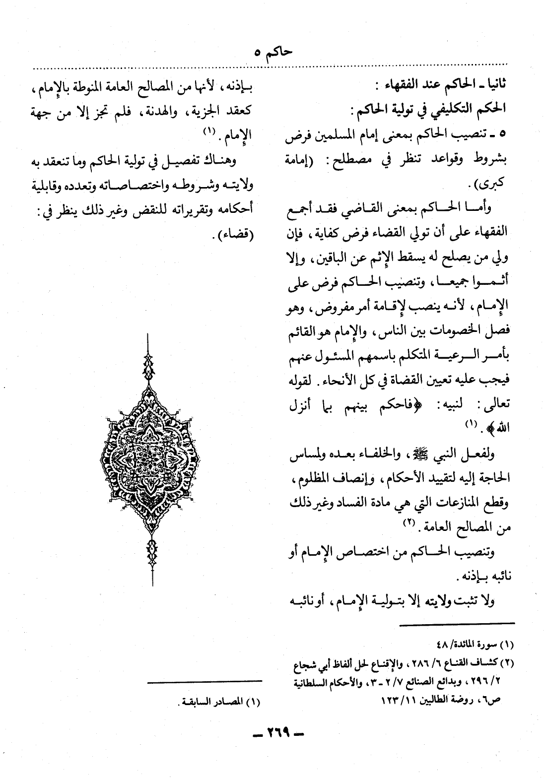 (2) كشاف القناع 6 / 286، والإقناع لحل ألفاظ أبي شجاع 2 / 296، وبدائع الصنائع 7 / 2 - 3، والأحكام السلطانية ص 6، وروضة الطالبين 11 / 123.