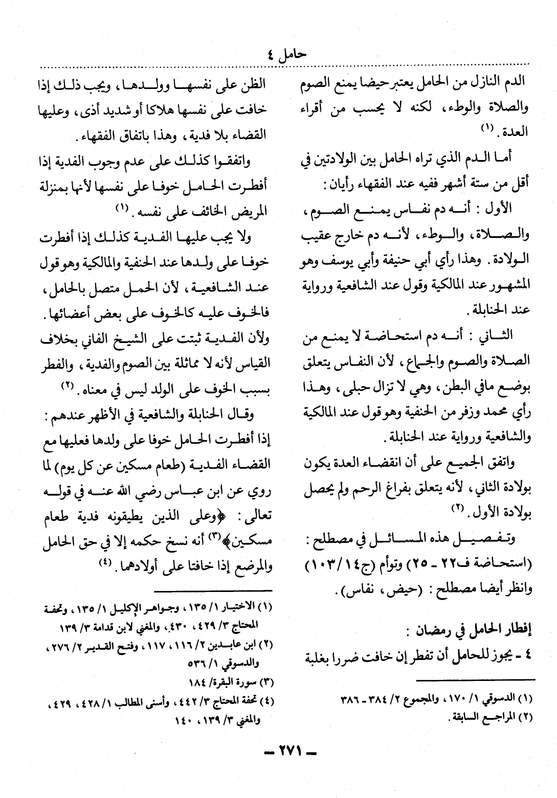 4 - يَجُوزُ لِلْحَامِل أَنْ تُفْطِرَ إِنْ خَافَتْ ضَرَرًا بِغَلَبَةِ