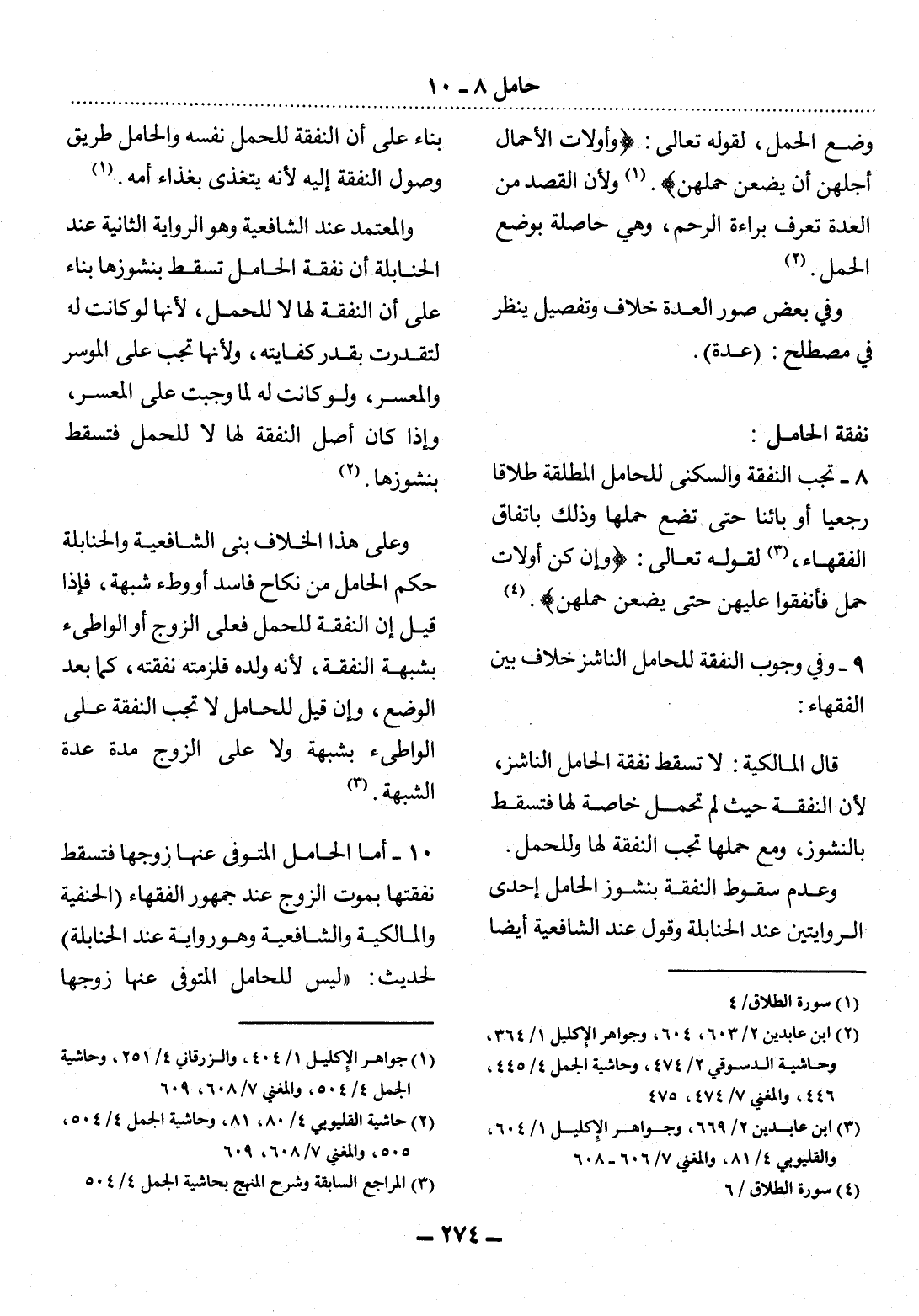 10 - أَمَّا الْحَامِل الْمُتَوَفَّى عَنْهَا زَوْجُهَا فَتَسْقُطُ نَفَقَتُهَا بِمَوْتِ الزَّوْجِ عِنْدَ جُمْهُورِ الْفُقَهَاءِ (الْحَنَفِيَّةِ وَالْمَالِكِيَّةِ وَالشَّافِعِيَّةِ، وَهُوَ رِوَايَةٌ عِنْدَ الْحَنَابِلَةِ) لِحَدِيثِ: لَيْسَ لِلْحَامِل الْمُتَوَفَّى عَنْهَا زَوْجُهَا