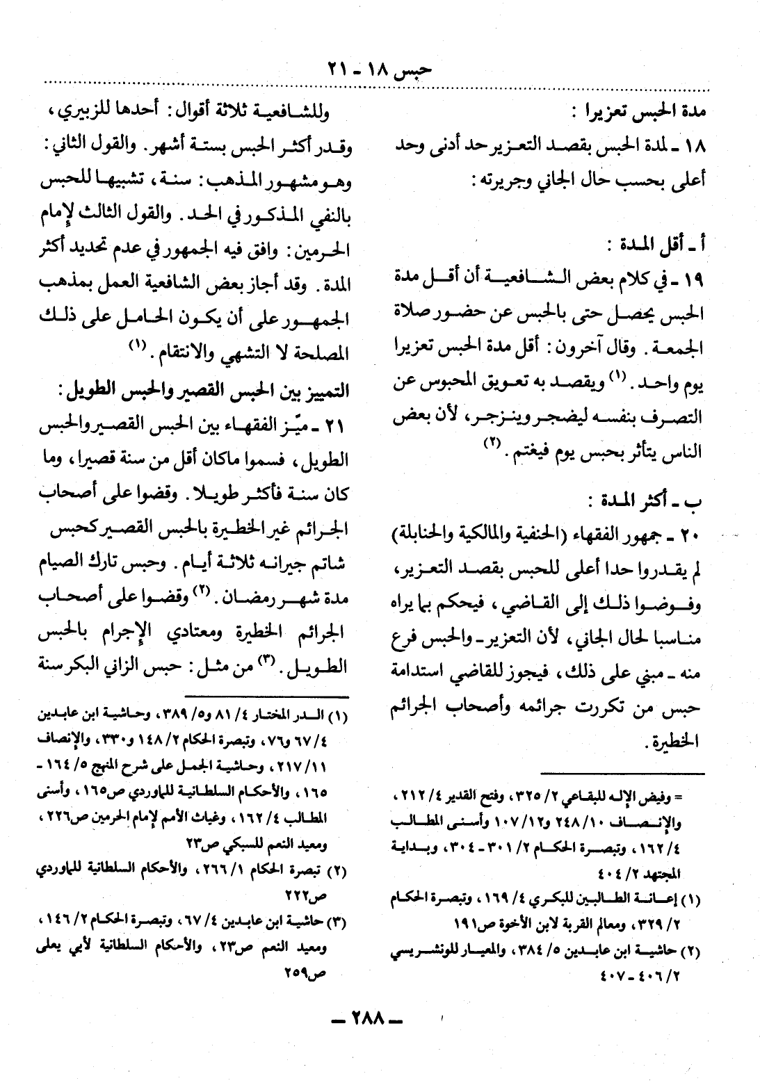 18 - لِمُدَّةِ الْحَبْسِ بِقَصْدِ التَّعْزِيرِ حَدٌّ أَدْنَى وَحَدٌّ أَعْلَى بِحَسَبِ حَال الْجَانِي وَجَرِيرَتِهِ:
