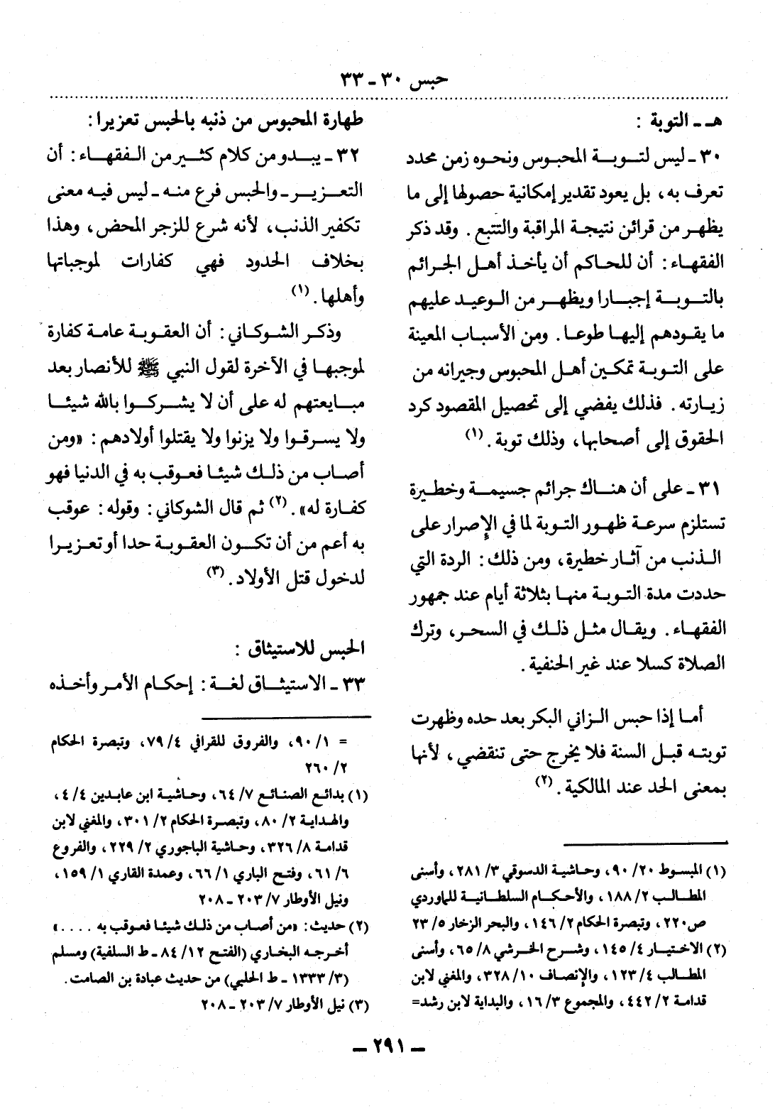 32 - يَبْدُو مِنْ كَلاَمِ كَثِيرٍ مِنَ الْفُقَهَاءِ: أَنَّ التَّعْزِيرَ - وَالْحَبْسُ فَرْعٌ مِنْهُ - لَيْسَ فِيهِ مَعْنَى تَكْفِيرِ الذَّنْبِ؛ لأَِنَّهُ شُرِعَ لِلزَّجْرِ الْمَحْضِ، وَهَذَا بِخِلاَفِ الْحُدُودِ فَهِيَ كَفَّارَاتٌ لِمُوجِبَاتِهَا وَأَهْلِهَا (1) .