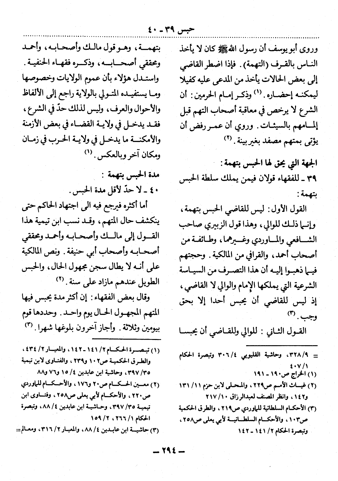 39 - لِلْفُقَهَاءِ قَوْلاَنِ فِيمَنْ يَمْلِكُ سُلْطَةَ الْحَبْسِ بِتُهَمَةٍ: