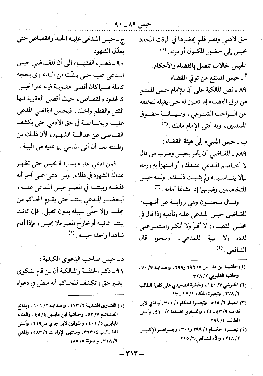 89 م - لِلْقَاضِي أَنْ يَأْمُرَ بِحَبْسِ وَضَرْبِ مَنْ قَال: لاَ أُخَاصِمُ الْمُدَّعِيَ عِنْدَكَ، أَوِ اسْتَهْزَأَ بِهِ وَرَمَاهُ بِمَا لاَ يُنَاسِبُهُ وَلَمْ يَثْبُتْ ذَلِكَ. وَلَهُ حَبْسُ الْمُتَخَاصِمَيْنِ وَضَرْبُهُمَا إِذَا تَشَاتَمَا أَمَامَهُ (3) .