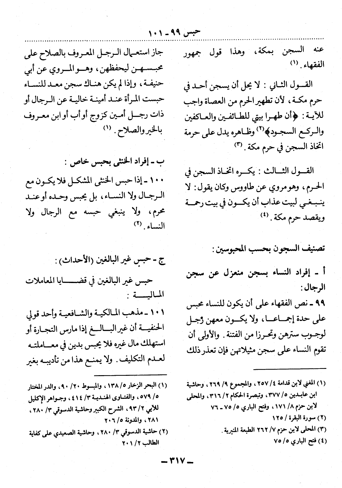 100 - إِذَا حُبِسَ الْخُنْثَى الْمُشْكِل فَلاَ يَكُونُ مَعَ الرِّجَال وَلاَ النِّسَاءِ، بَل يُحْبَسُ وَحْدَهُ أَوْ عِنْدَ مَحْرَمٍ، وَلاَ يَنْبَغِي حَبْسُهُ مَعَ الرِّجَال وَلاَ النِّسَاءِ (2) .