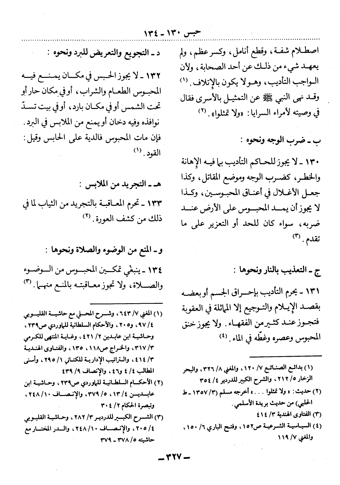 133 - تَحْرُمُ الْمُعَاقَبَةُ بِالتَّجْرِيدِ مِنَ الثِّيَابِ لِمَا فِي ذَلِكَ مِنْ كَشْفِ الْعَوْرَةِ. (2)