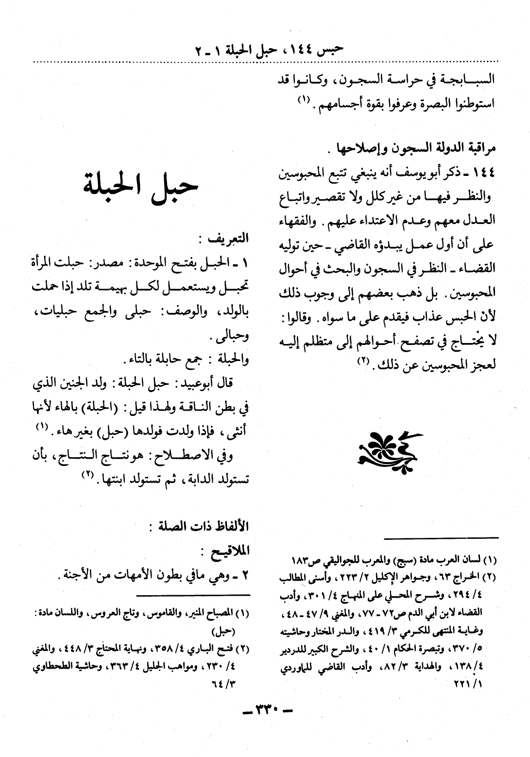 (1) المصباح المنير، والقاموس، وتاج العروس، واللسان مادة: (حبل) .