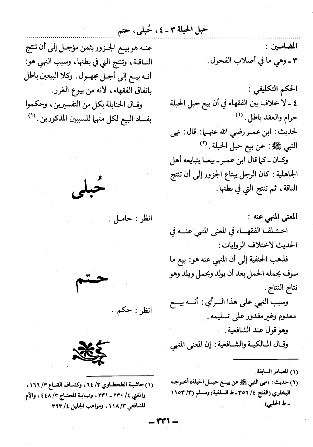 (2) حديث: " نهى النبي صلى الله عليه وسلم عن بيع حبل الحبلة " أخرجه البخاري (الفتح 4 / 356 - ط السلفية) ومسلم (3 / 1153 - ط الحلبي) .