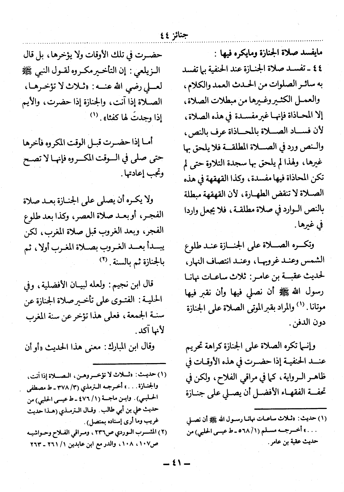 (2) المشرب الوردي ص 236، ومراقي الفلاح وحواشيه ص 107، 108، والدر مع ابن عابدين 1 / 261 - 263.