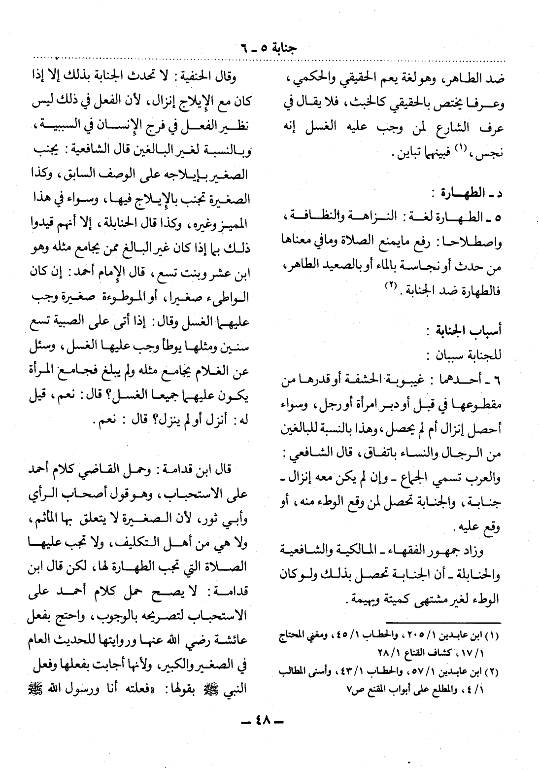 (1) ابن عابدين 1 / 205، والحطاب 1 / 45، ومغني المحتاج 1 / 17، كشاف القناع 1 / 28.