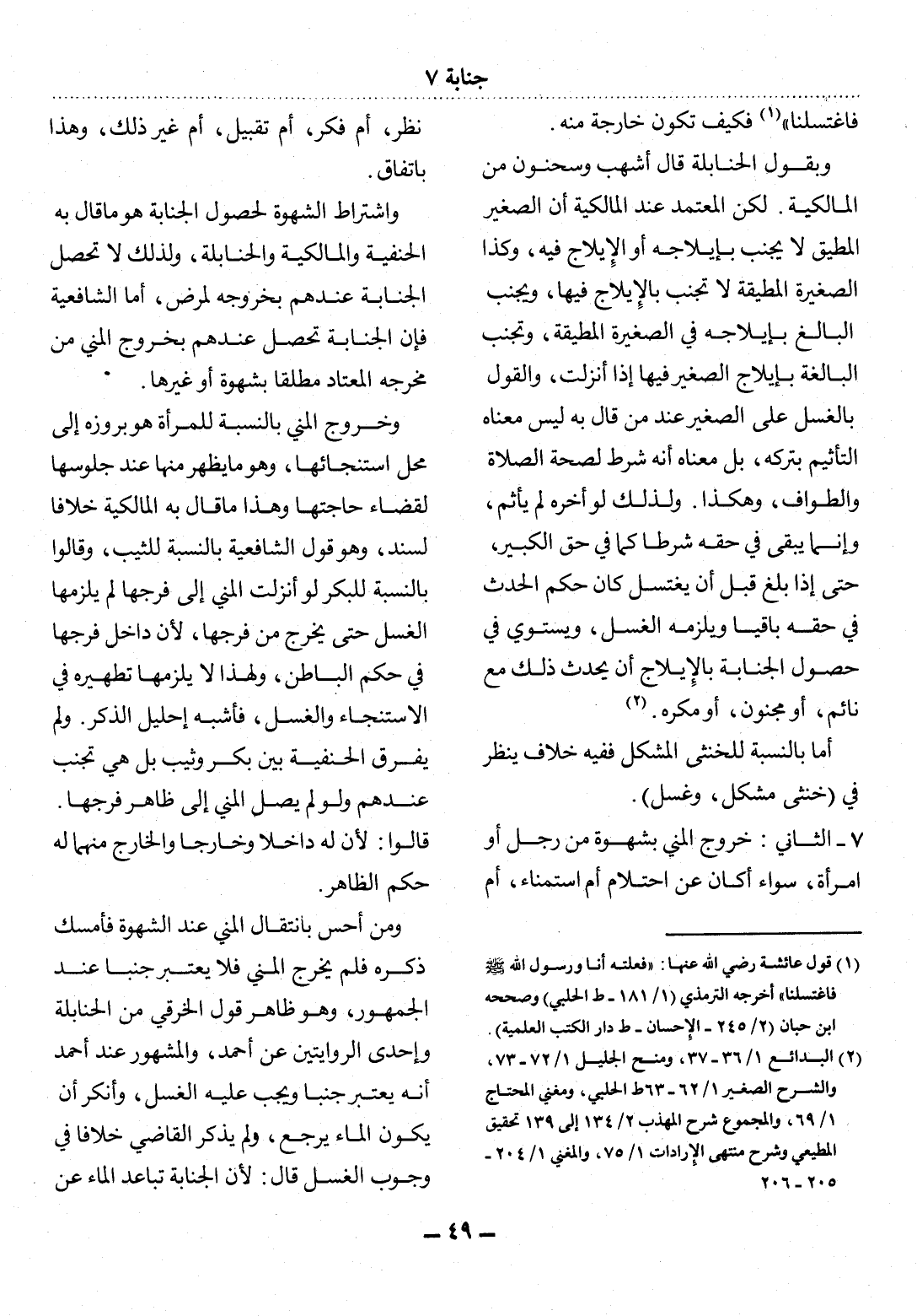 7 - الثَّانِي: خُرُوجُ الْمَنِيِّ بِشَهْوَةٍ مِنْ رَجُلٍ أَوِ امْرَأَةٍ، سَوَاءٌ أَكَانَ عَنِ احْتِلاَمٍ أَمِ اسْتِمْنَاءٍ، أَمْ