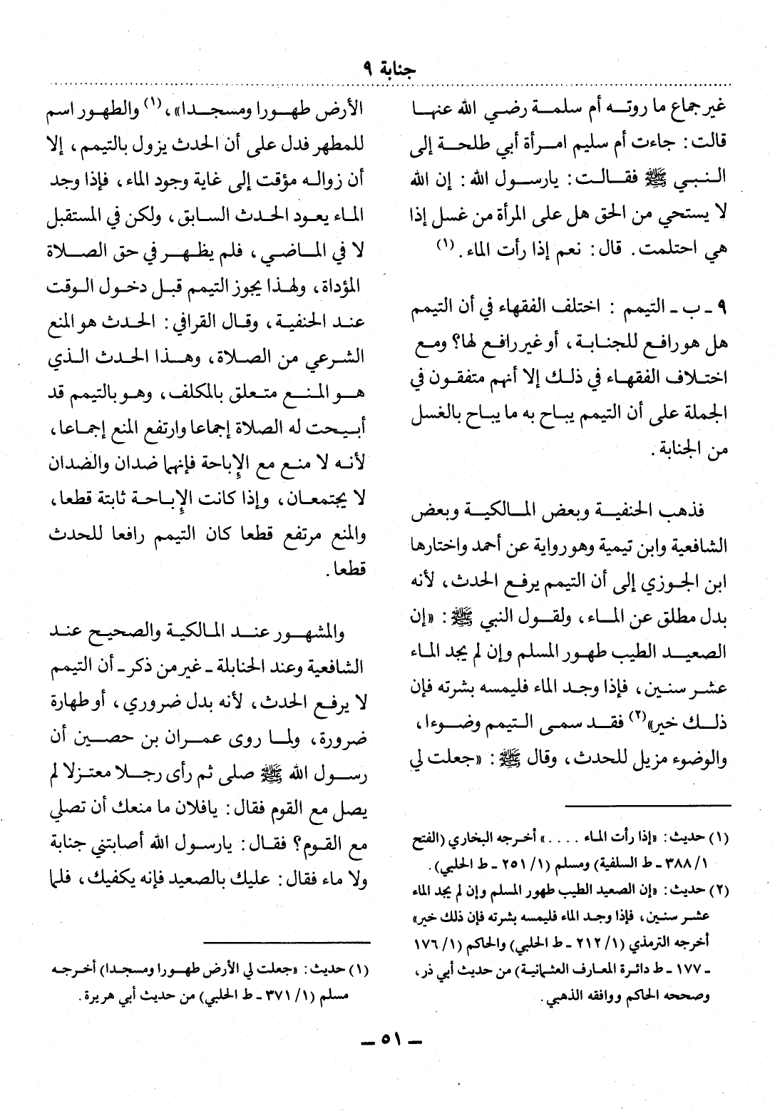 (1) حديث: " إذا رأت الماء. . . . " أخرجه البخاري (الفتح 1 / 388 - ط السلفية) مسلم (1 / 251 - ط الحلبي) .