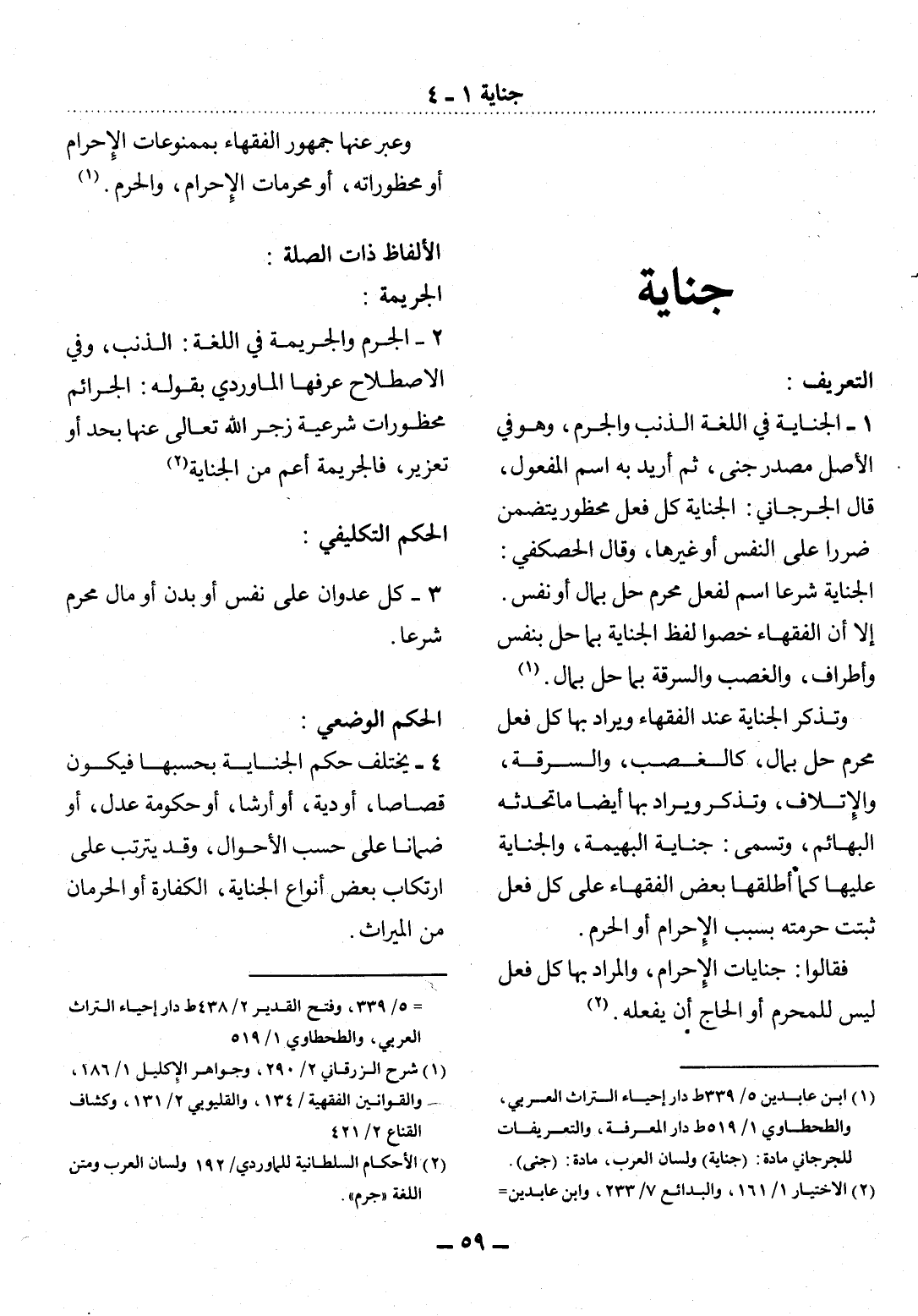 (1) ابن عابدين 5 / 339 ط دار إحياء التراث العربي، والطحطاوي 1 / 519 ط دار المعرفة، والتعريفات للجرجاني مادة: (جناية) ، ولسان العرب، مادة: (جنى) .