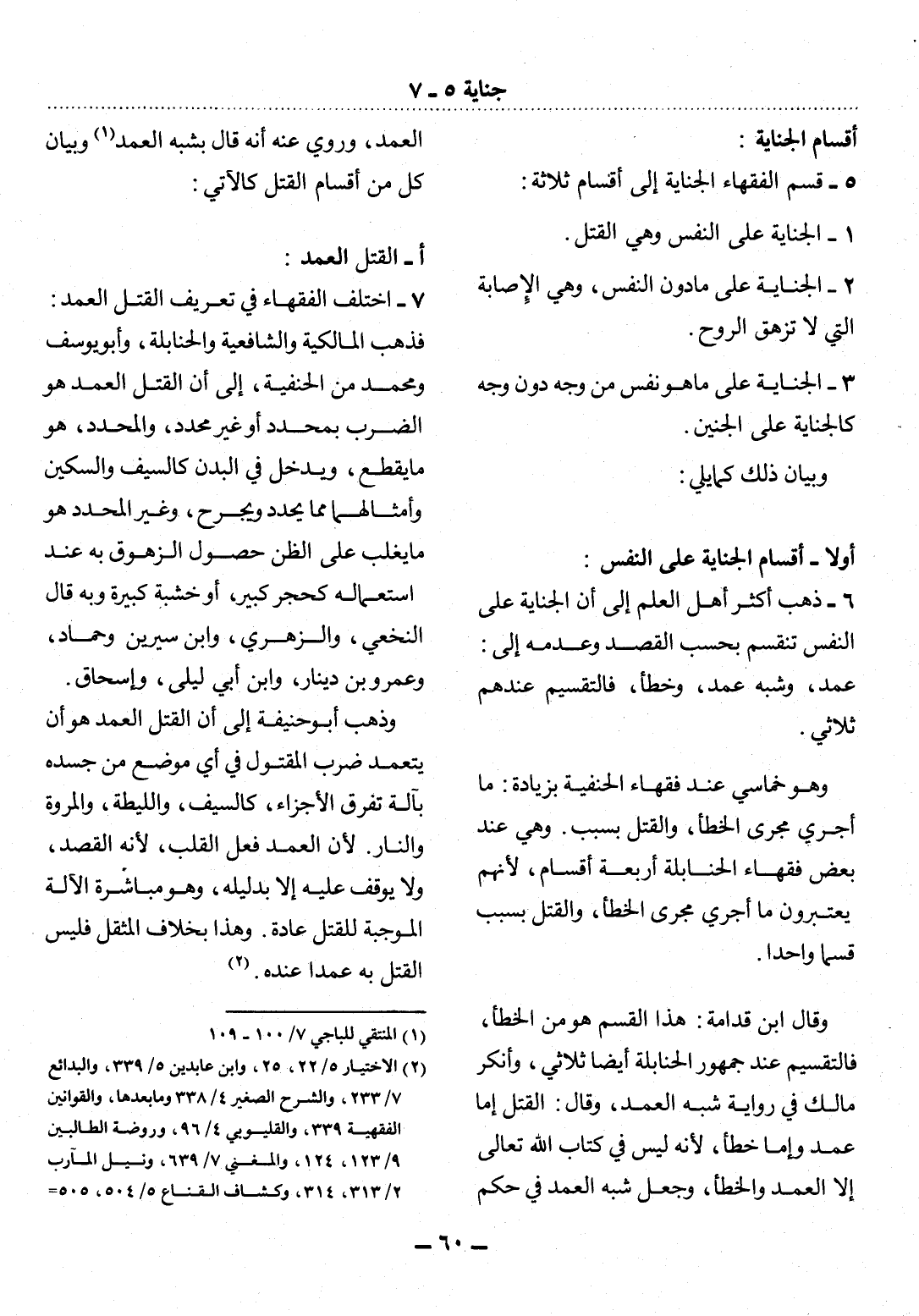 5 - قَسَّمَ الْفُقَهَاءُ الْجِنَايَةَ إِلَى أَقْسَامٍ ثَلاَثَةٍ: