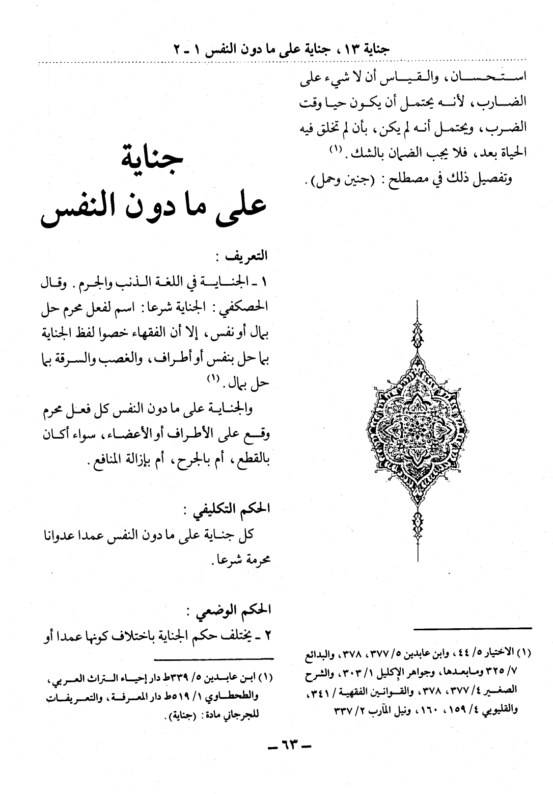 (1) ابن عابدين 5 / 339 ط دار إحياء التراث العربي، والطحطاوي 1 / 519 ط دار المعرفة، والتعريفات للجرجاني مادة: (جناية) .