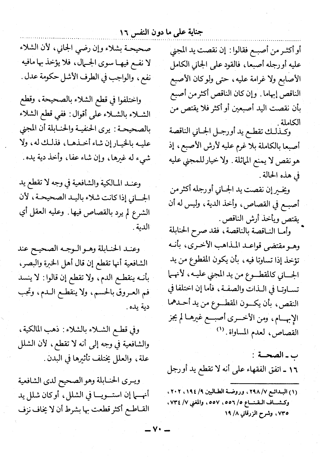 وَاخْتَلَفُوا فِي قَطْعِ الشَّلاَّءِ بِالصَّحِيحَةِ، وَقَطْعِ الشَّلاَّءِ بِالشَّلاَّءِ عَلَى أَقْوَالٍ: فَفِي قَطْعِ الشَّلاَّءِ بِالصَّحِيحَةِ: يَرَى الْحَنَفِيَّةُ وَالْحَنَابِلَةُ أَنَّ الْمَجْنِيَّ عَلَيْهِ بِالْخِيَارِ إِنْ شَاءَ أَخَذَهَا، فَذَلِكَ لَهُ، وَلاَ شَيْءَ لَهُ غَيْرُهَا، وَإِنْ شَاءَ عَفَا، وَأَخَذَ دِيَةَ يَدِهِ.