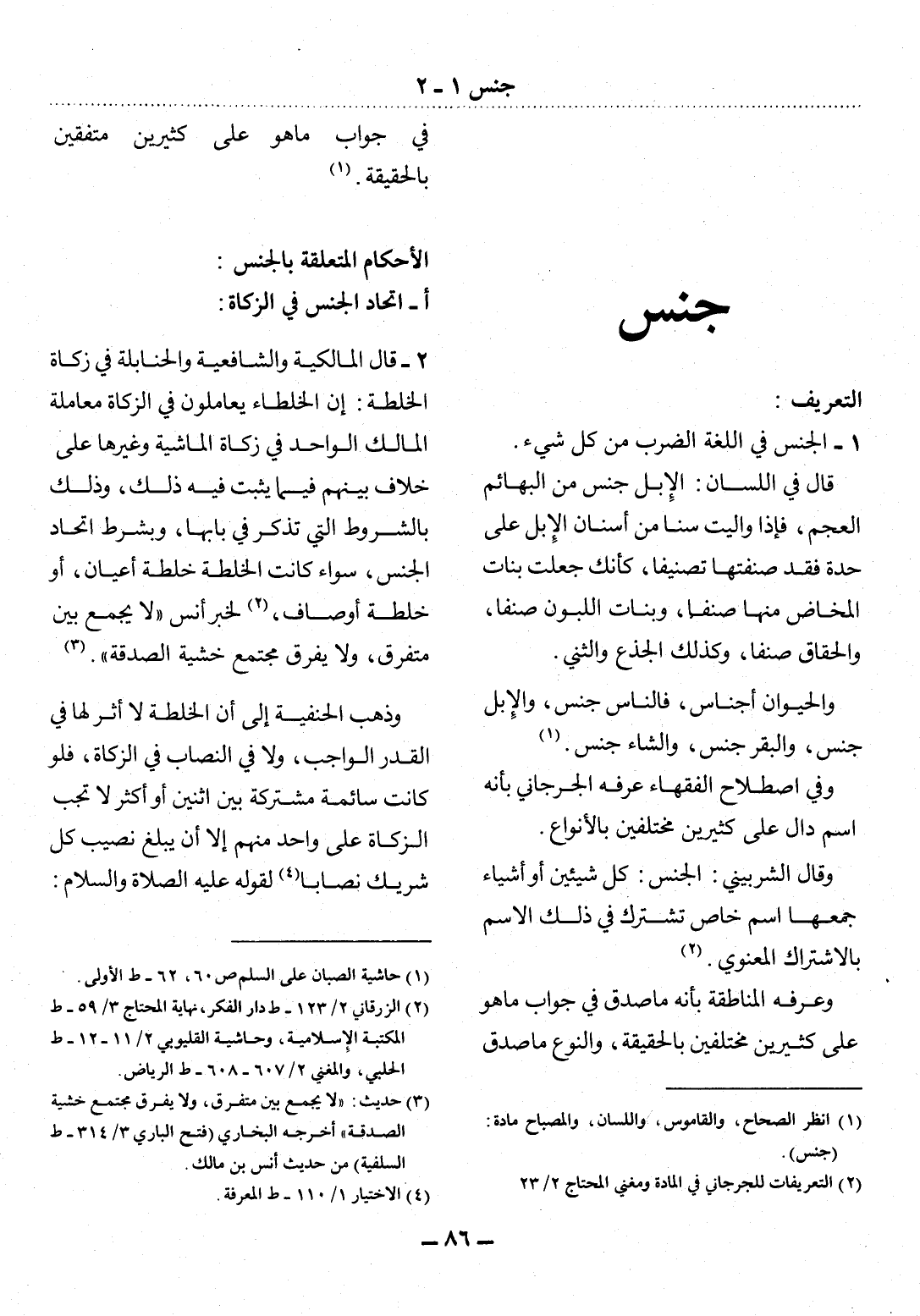 (1) انظر الصحاح، والقاموس، واللسان، والمصباح مادة (جنس) .