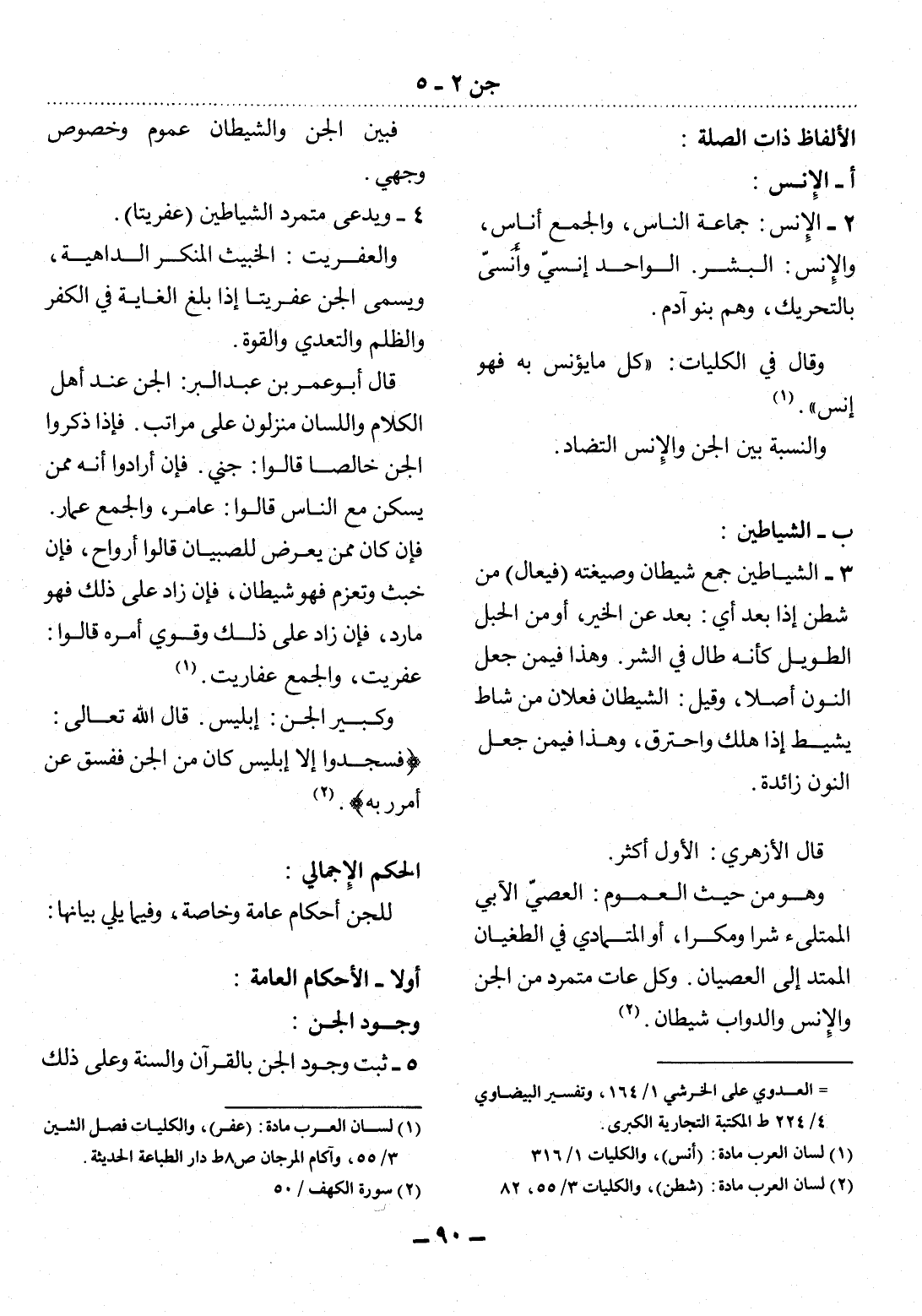 فَبَيْنَ الْجِنِّ وَالشَّيْطَانِ عُمُومٌ وَخُصُوصٌ وَجْهِيٌّ.