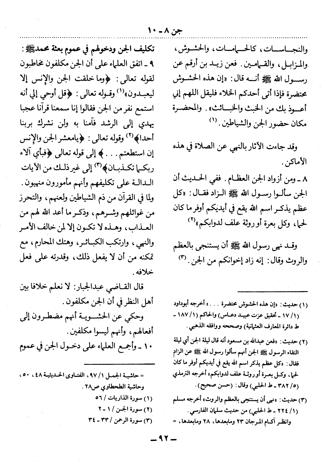 10 - وَأَجْمَعَ الْعُلَمَاءُ عَلَى دُخُول الْجِنِّ فِي عُمُومِ