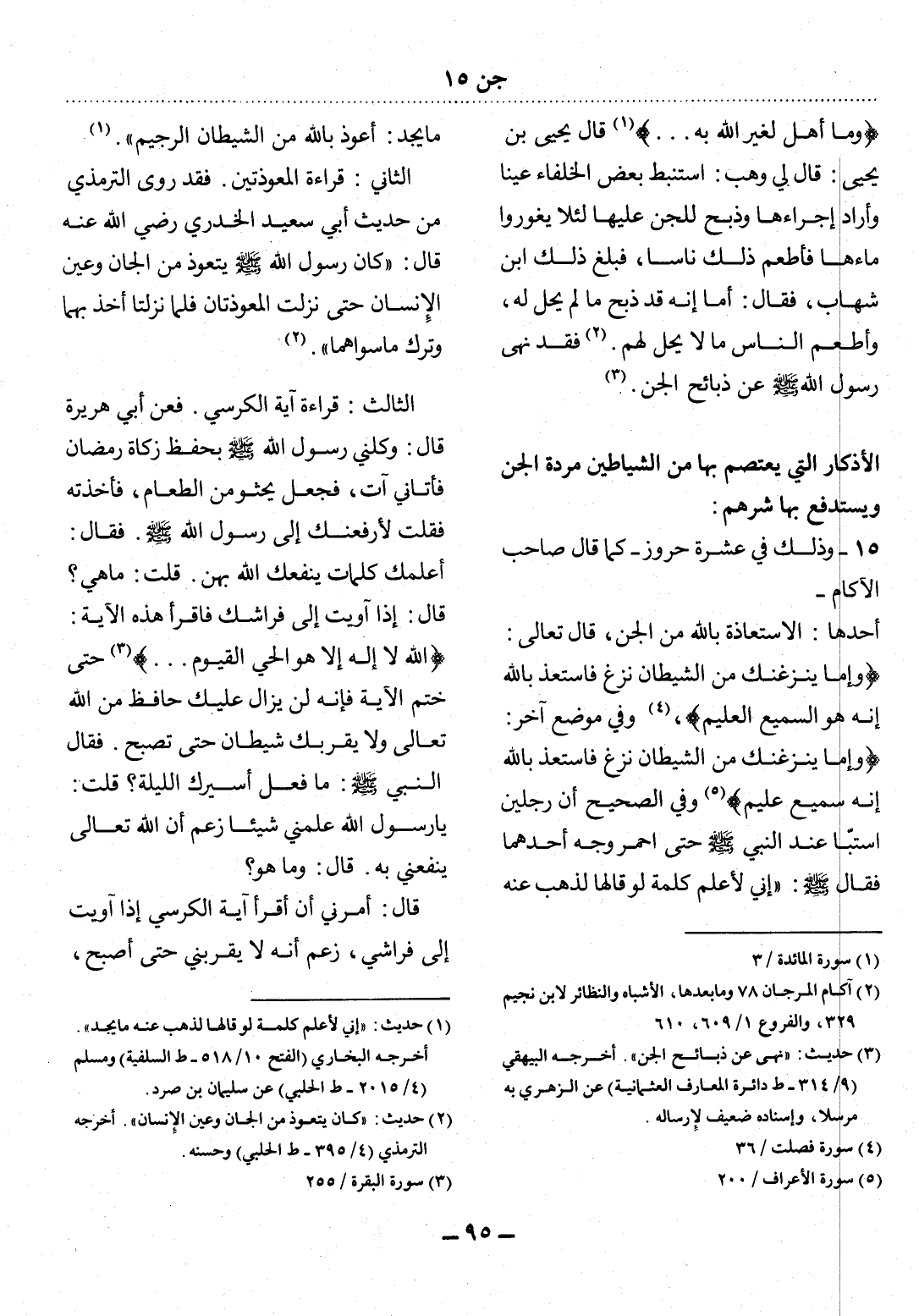 الأَْذْكَارُ الَّتِي يُعْتَصَمُ بِهَا مِنَ الشَّيَاطِينِ مَرَدَةِ الْجِنِّ وَيُسْتَدْفَعُ بِهَا شَرُّهُمْ: