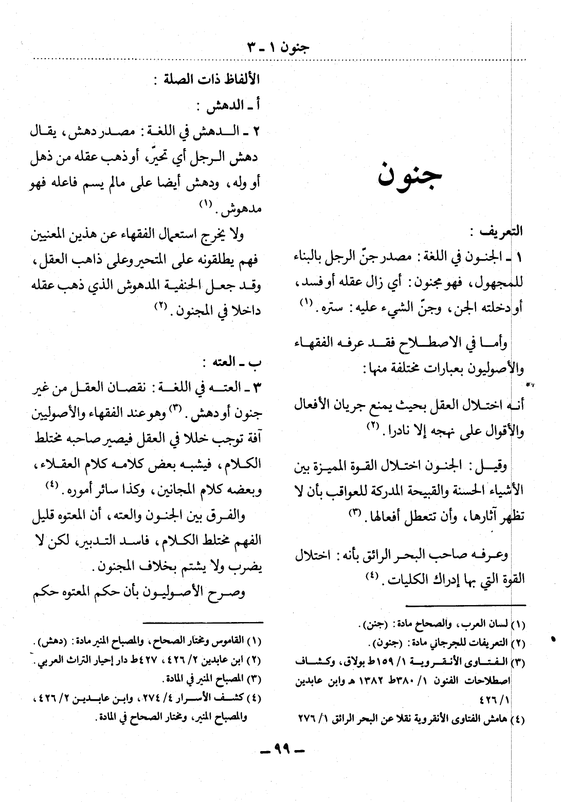 (2) التعريفات للجرجاني مادة (جنون) .