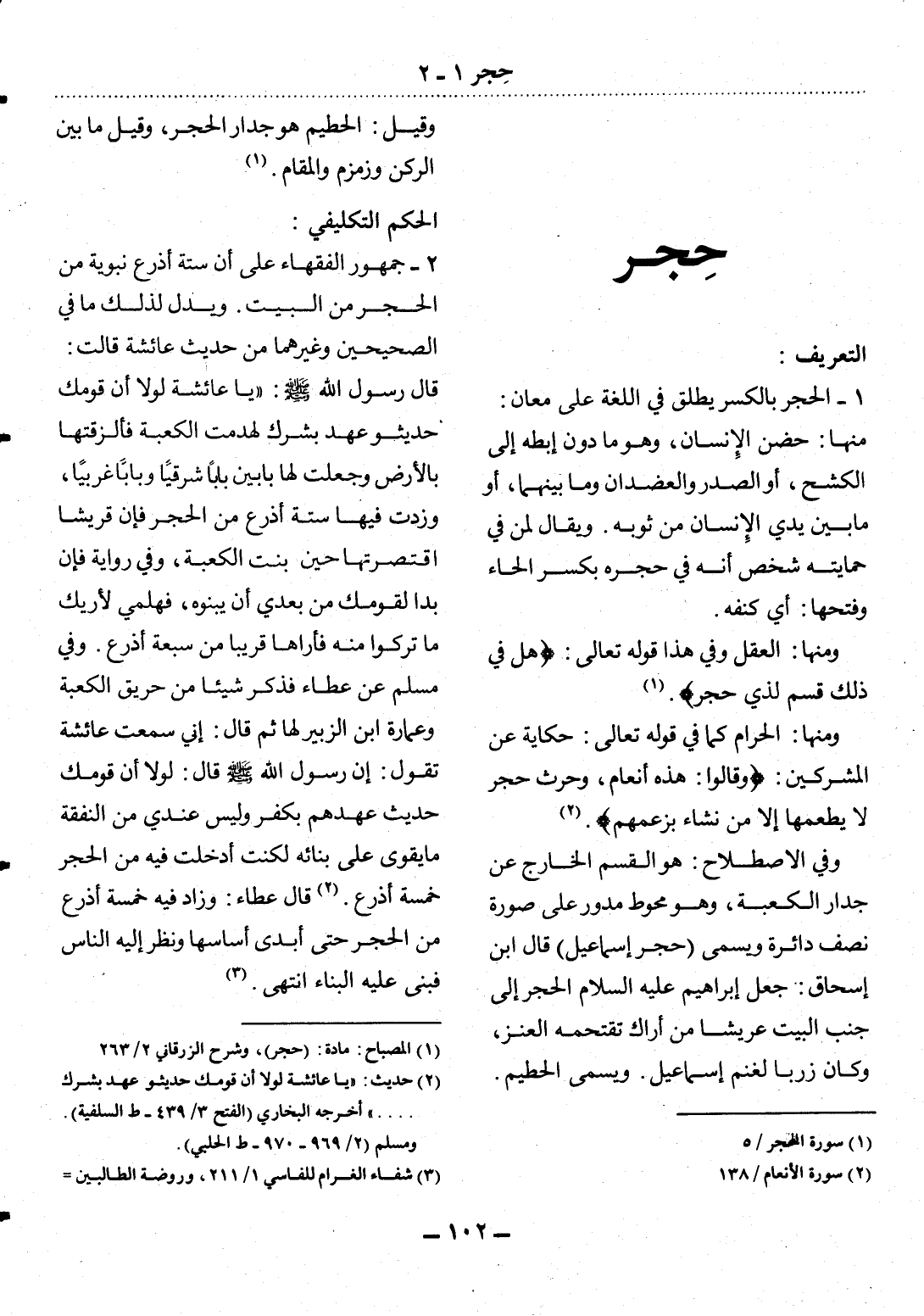 (1) المصباح: مادة (حجر) ، وشرح الزرقاني 2 / 263.