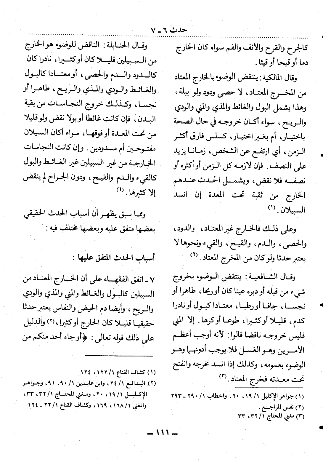 (1) جواهر الإكليل 1 / 19، 20، والحطاب 1 / 290 - 293.