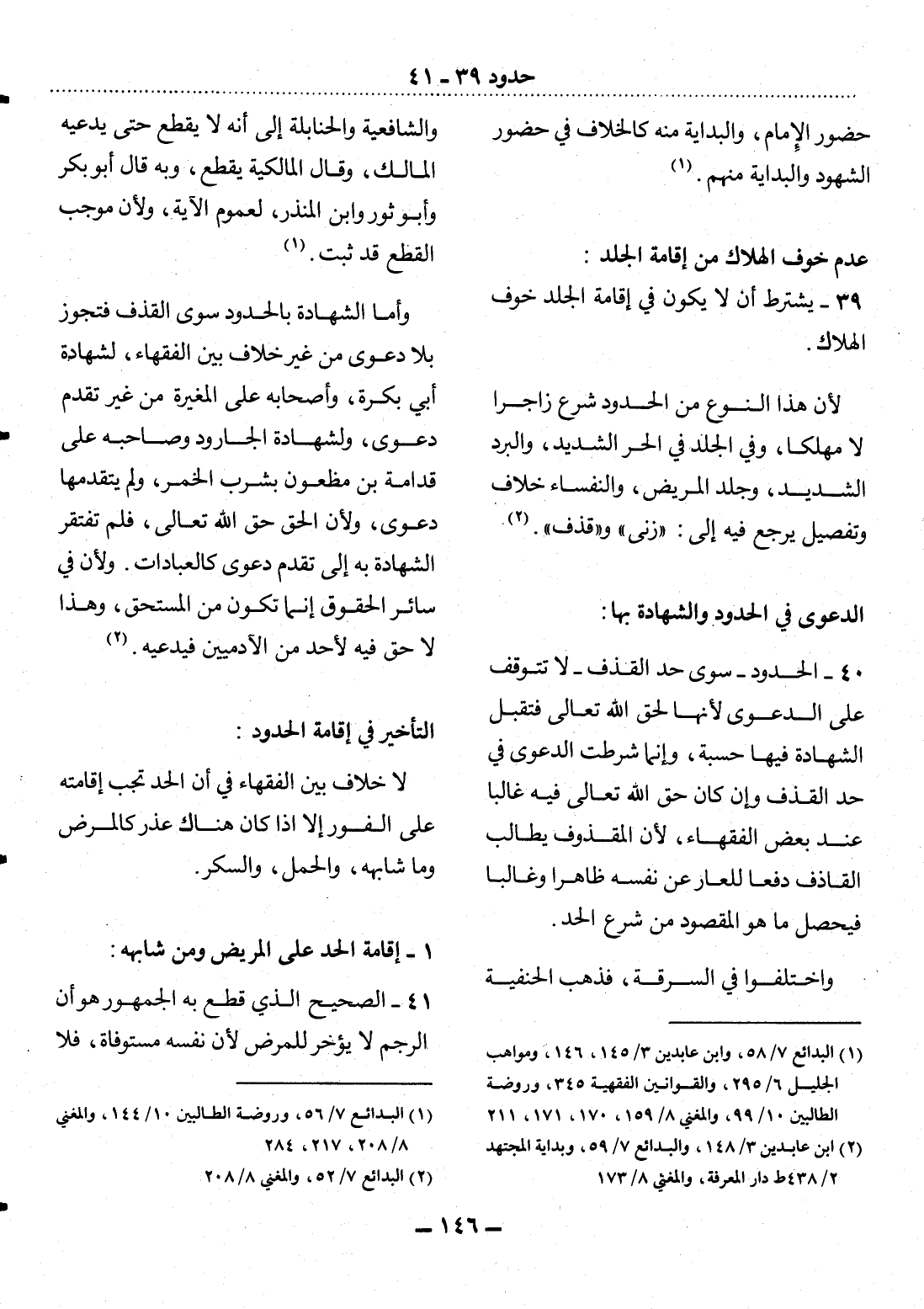 41 - الصَّحِيحُ الَّذِي قَطَعَ بِهِ الْجُمْهُورُ هُوَ أَنَّ الرَّجْمَ لاَ يُؤَخَّرُ لِلْمَرَضِ لأَِنَّ نَفْسَهُ مُسْتَوْفَاةٌ، فَلاَ