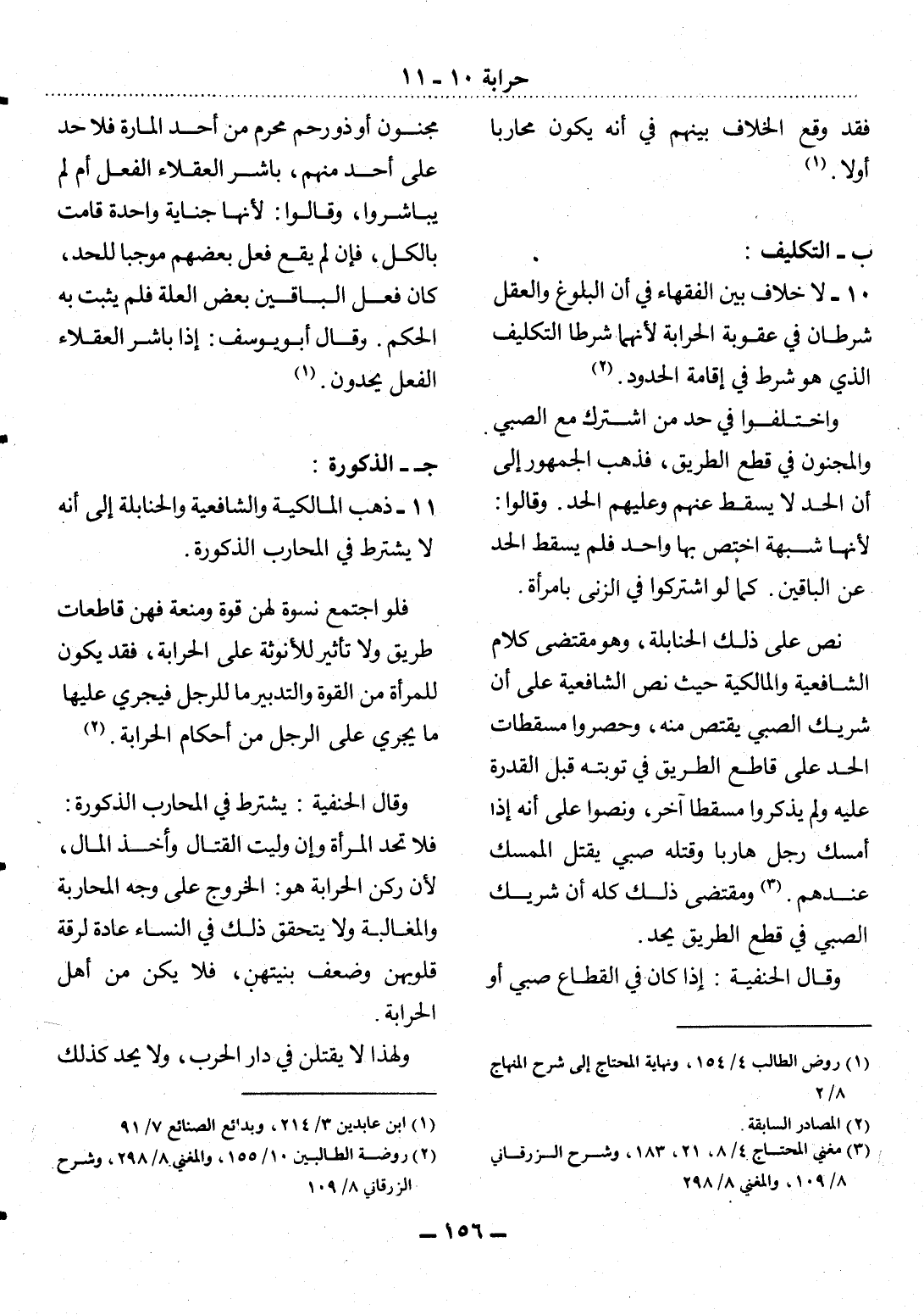 10 - لاَ خِلاَفَ بَيْنَ الْفُقَهَاءِ فِي أَنَّ الْبُلُوغَ وَالْعَقْل شَرْطَانِ فِي عُقُوبَةِ الْحِرَابَةِ لأَِنَّهُمَا شَرْطَا التَّكْلِيفِ الَّذِي هُوَ شَرْطٌ فِي إِقَامَةِ الْحُدُودِ (2) .
