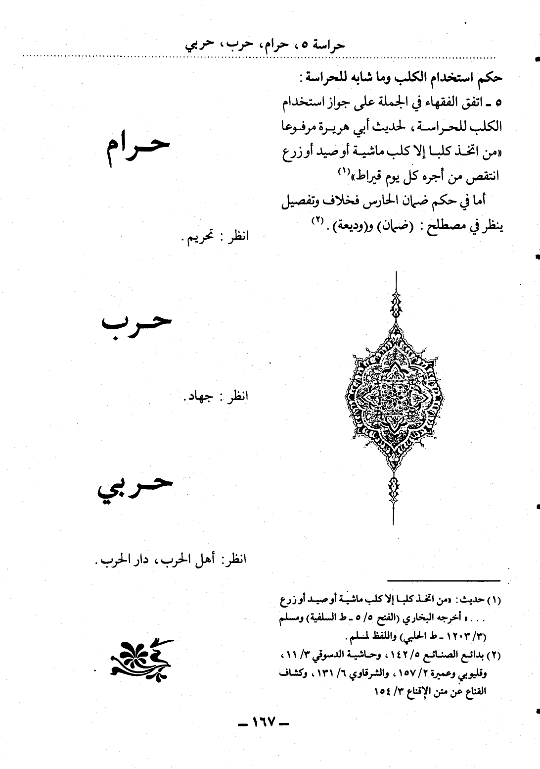 (1) حديث: " من اتخذ كلبا إلا كلب ماشية أو صيد أو زرع. . . " أخرجه البخاري (الفتح 5 / 5 - ط السلفية) ومسلم (3 / 1203 - ط الحلبي) واللفظ لمسلم.