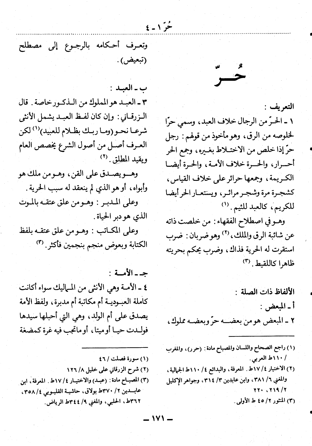 (3) المصباح مادة: (عبد) والاختيار 4 / 17 ط. المعرفة، ابن عابدين 2 / 370 ط بولاق، حاشية القليوبي 4 / 358، 362 ط، الحلبي، والمغني 9 / 344 ط الرياض.